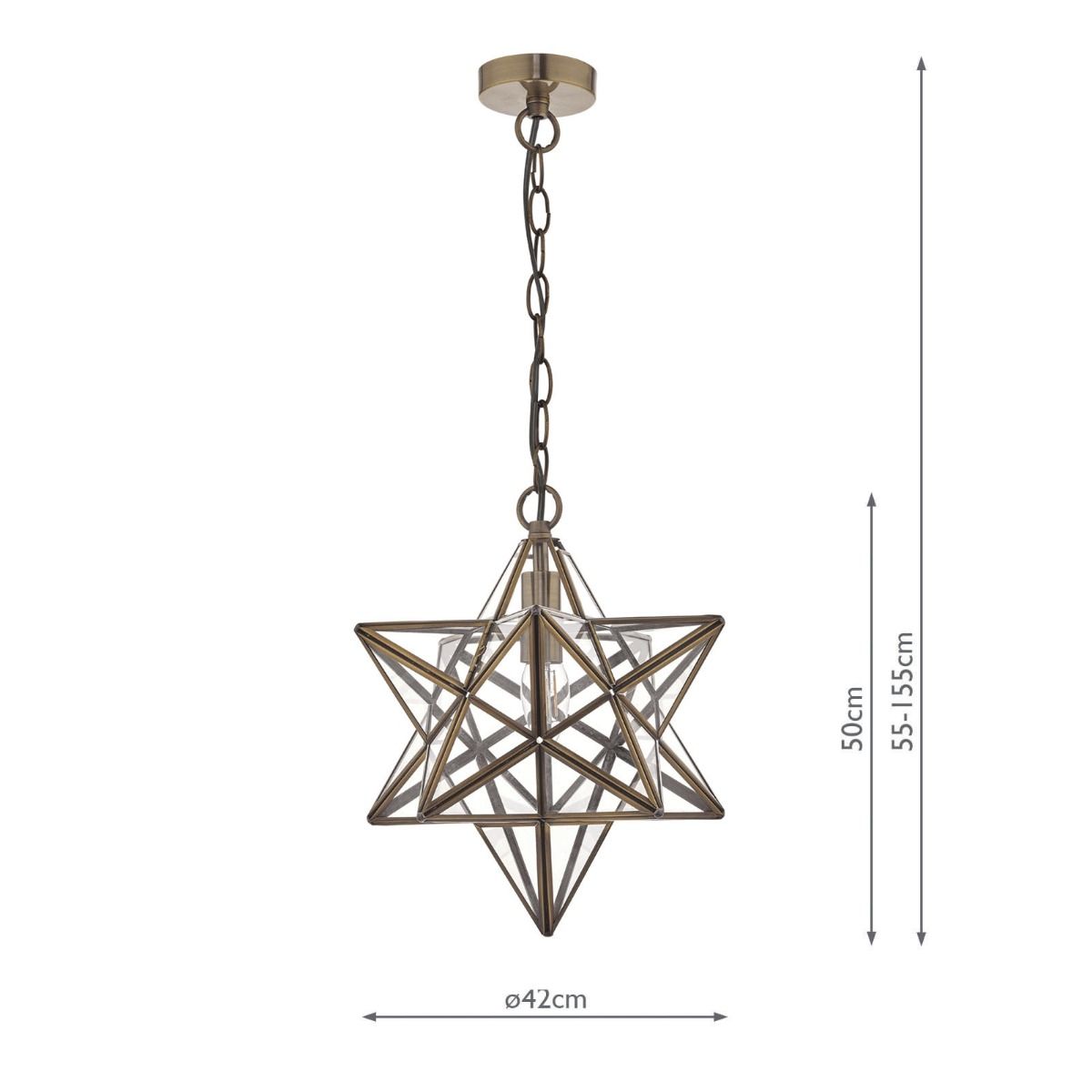 The large Ilario glass panelled star pendant features an antique brass finish with clear glass panels. This charming design is full of character and is ideal for adding character to your room.