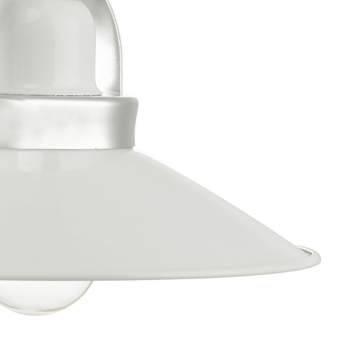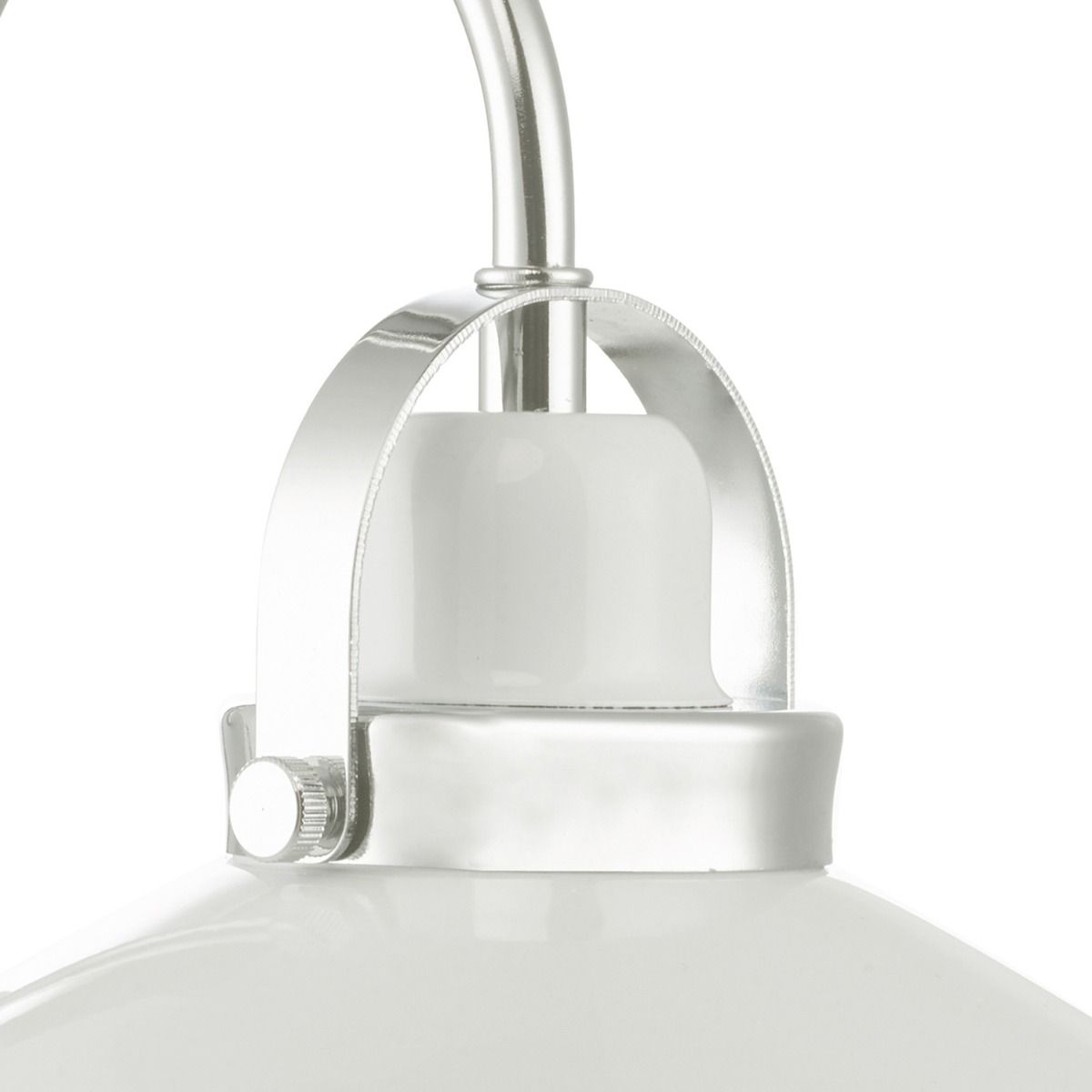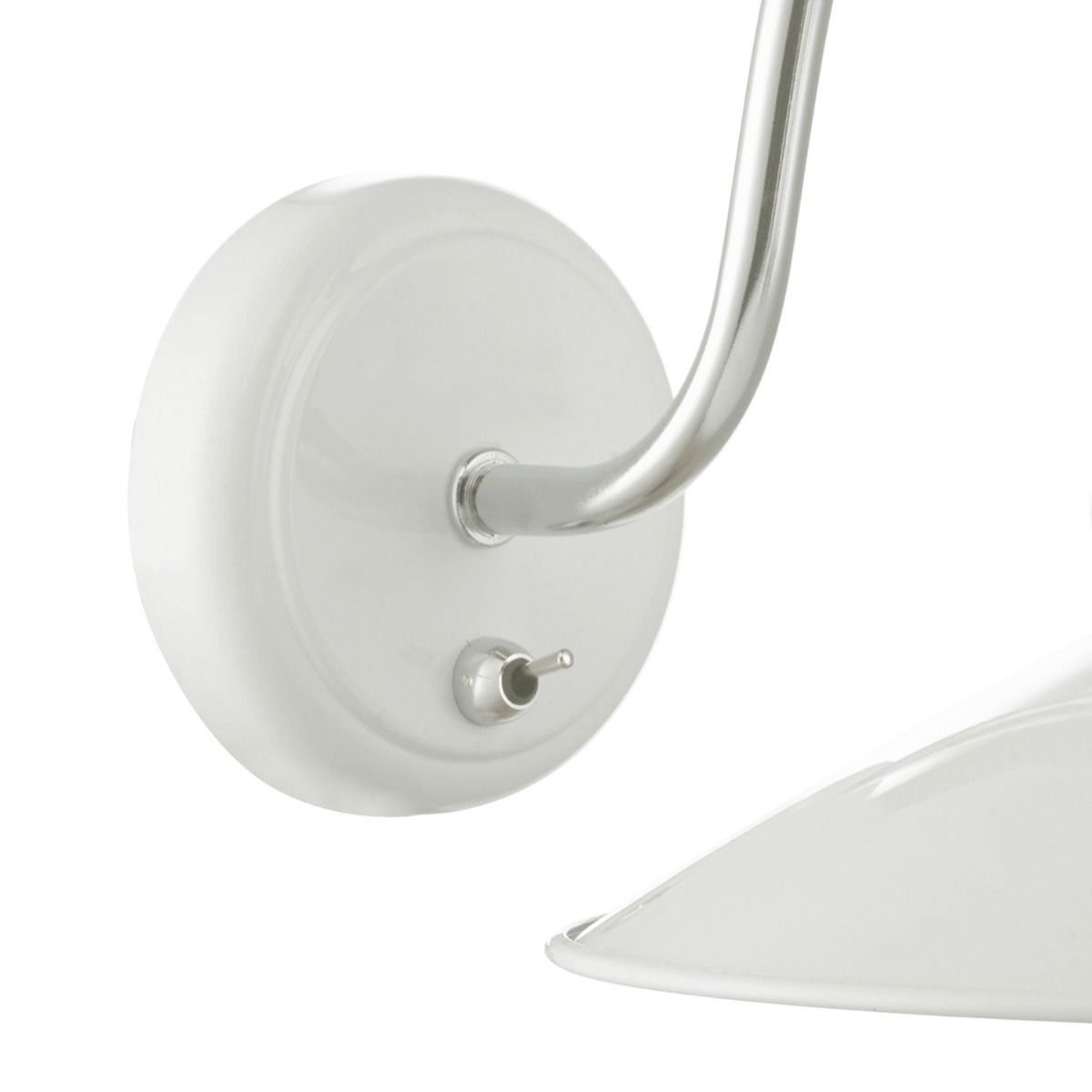A clean wall light with a polished chrome rocker switch. The white gloss shades and chrome detailing offer a clean stripped down softer industrial look. Available as a single wall light, single pendant, and three-light bar pendant.
