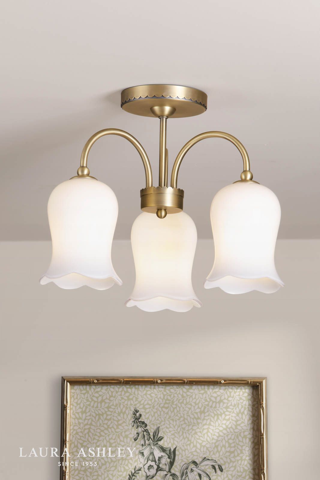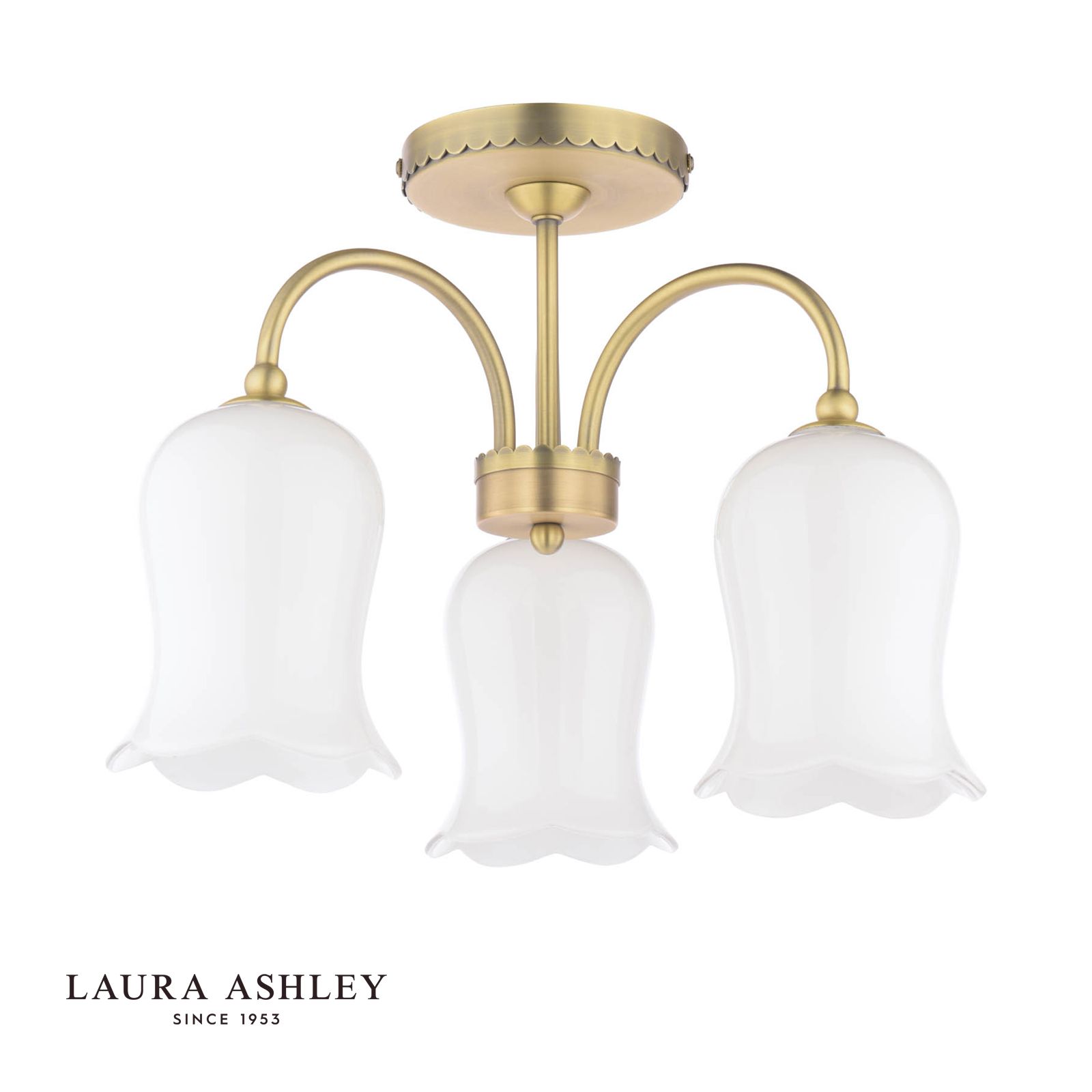 Laura Ashley Lidsell 3 Light Semi-Flush Matt Antique Brass and Opal Glass