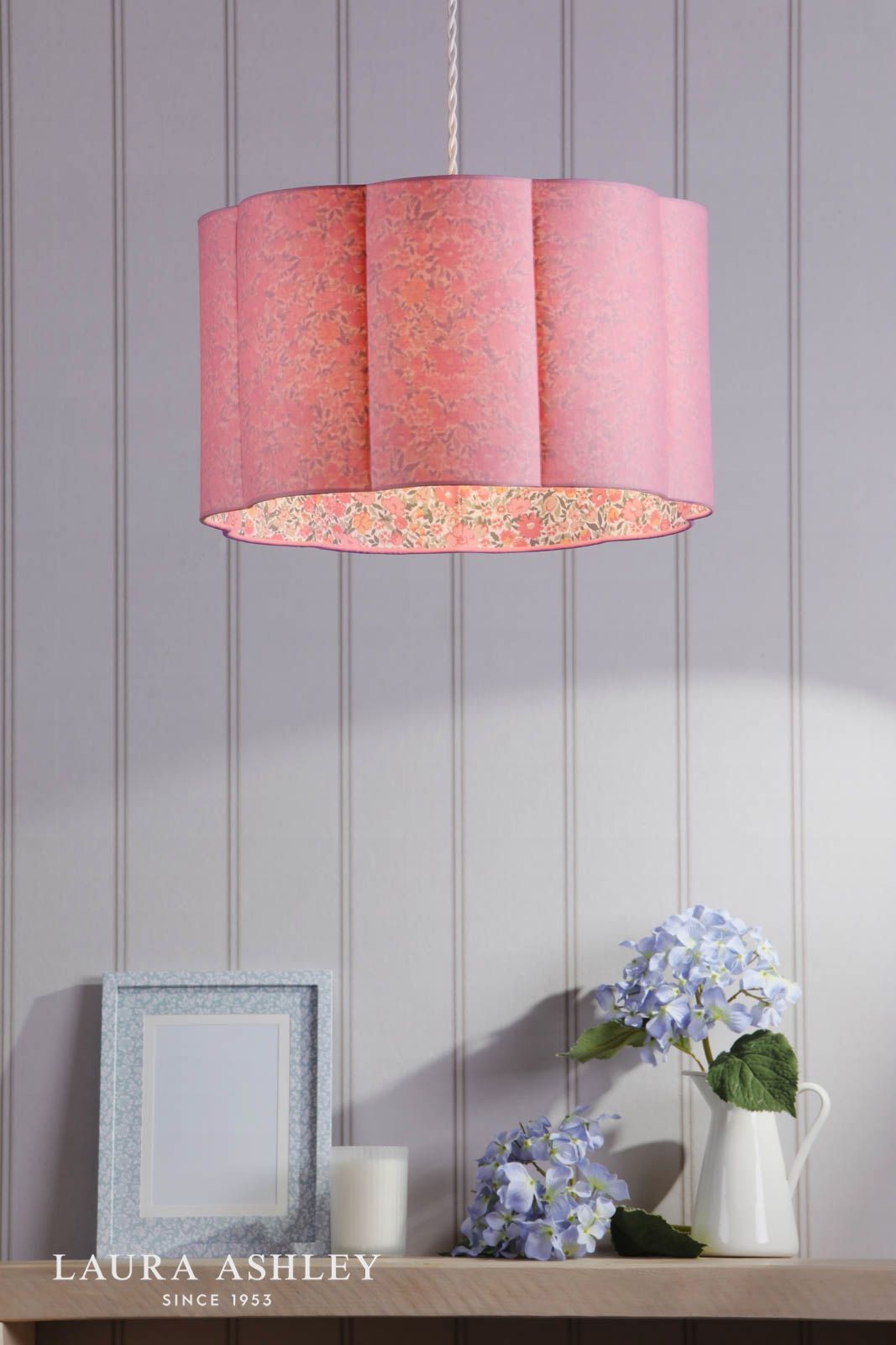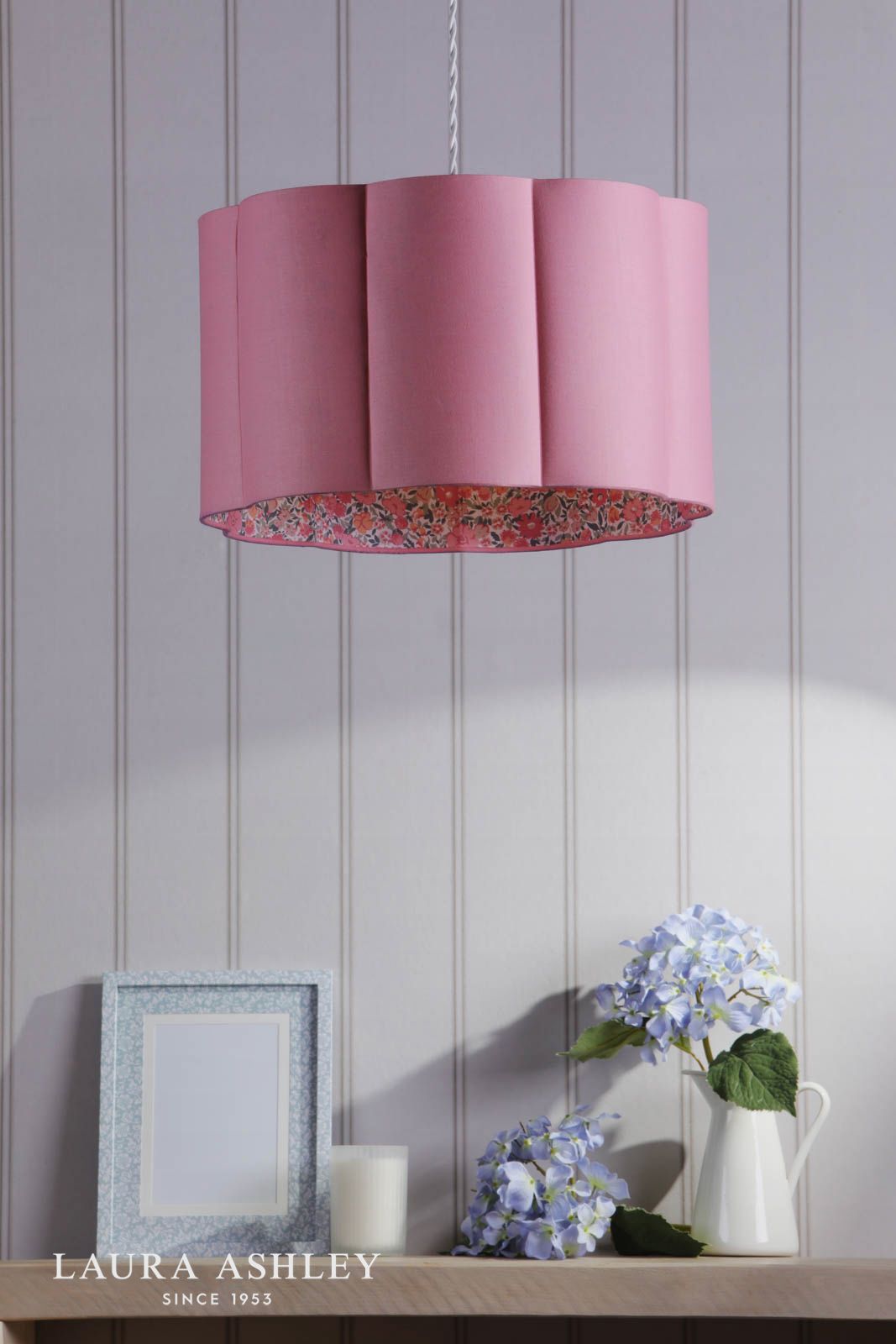 Laura Ashley Loveston Pink Cotton Scalloped Shade 38cm
