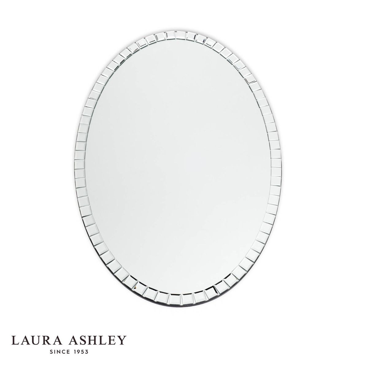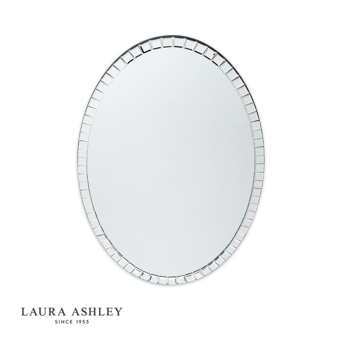 The oval Marcella mirror from Laura Ashley will certainly catch your eye - and the light - with its edging of individually cut, square mirrored pieces, each bevelled for a luxurious look. This pretty wall mirror is mounted on a sturdy board backing painted black.