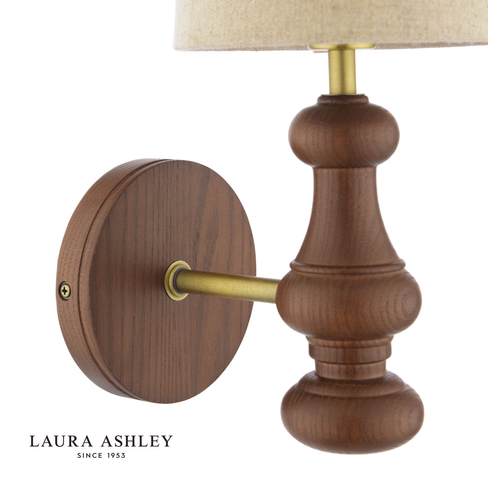 Laura Ashley Millbrook Wall Light Dark Wood and Industrial Brass With Shade