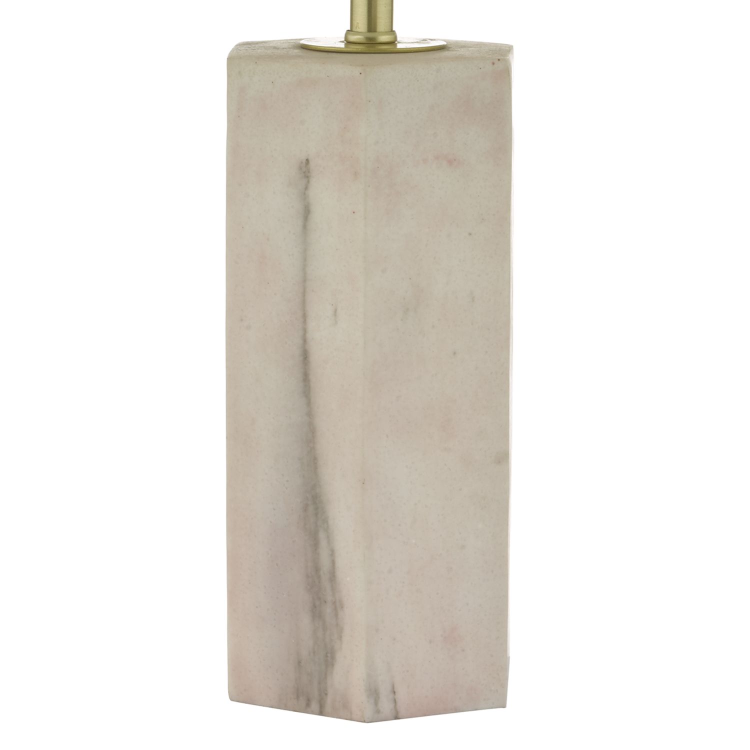 The exquisite Nalani table lamp features a pink marble base with brass detailing. This table lamp comes with an ivory linen shade and laminate inner; complete with a white braided cable.