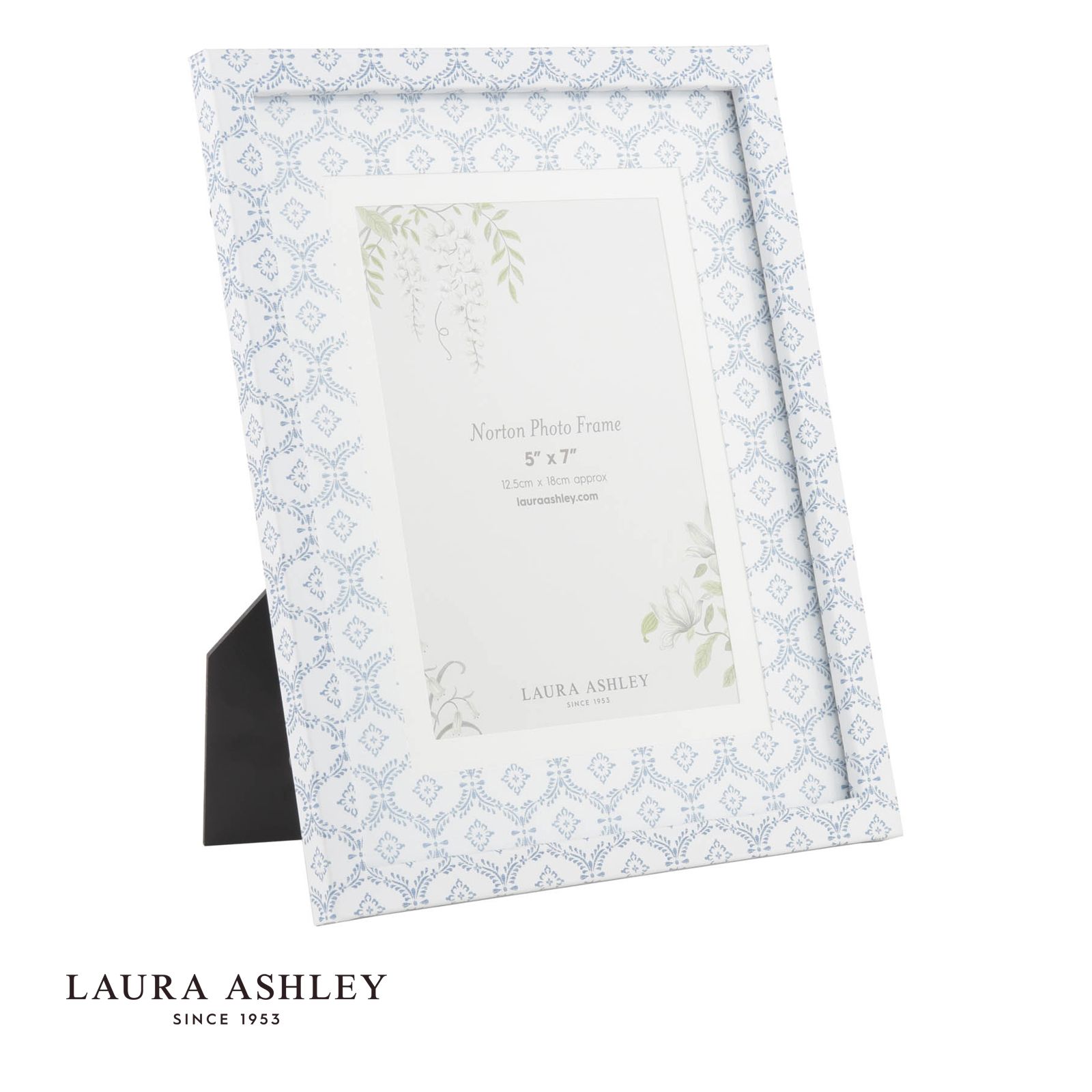 Celebrate life's most precious moments with the Norton photo frame 5x7 from Laura Ashley. Crafted with an elegant light blue colour and classic Norton print design, this frame lends an air of sophistication to any treasured photograph. Whether standing freely on a tabletop or mounted gracefully on the wall, the versatile display options let you showcase your favourite memories in style. Perfect for framing those special occasion photos, from weddings to graduations and everything in between. Trust the Laura Ashley name to provide a timeless, high-quality frame that beautifully complements your most cherished photographic keepsakes. Elevate your home's decor while honouring life's extraordinary moments with this exquisite Laura Ashley photo frame.