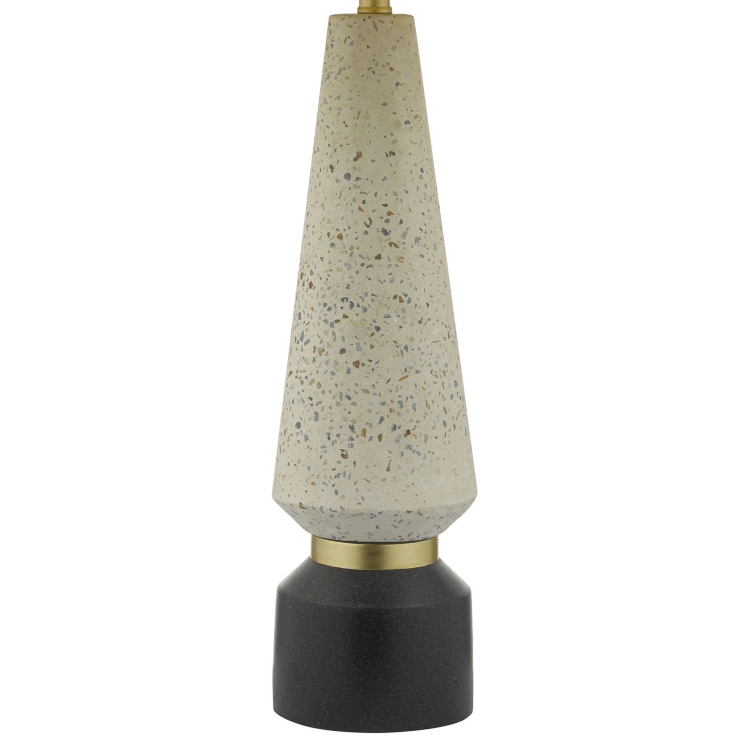 The striking Onora table lamp features an on-trend Terazzo base with black and gold detailing. This table lamp comes with a black faux silk drum shade with a matt gold inner; complete with a black braided cable. Ideal for adding a bold statement to any interior.