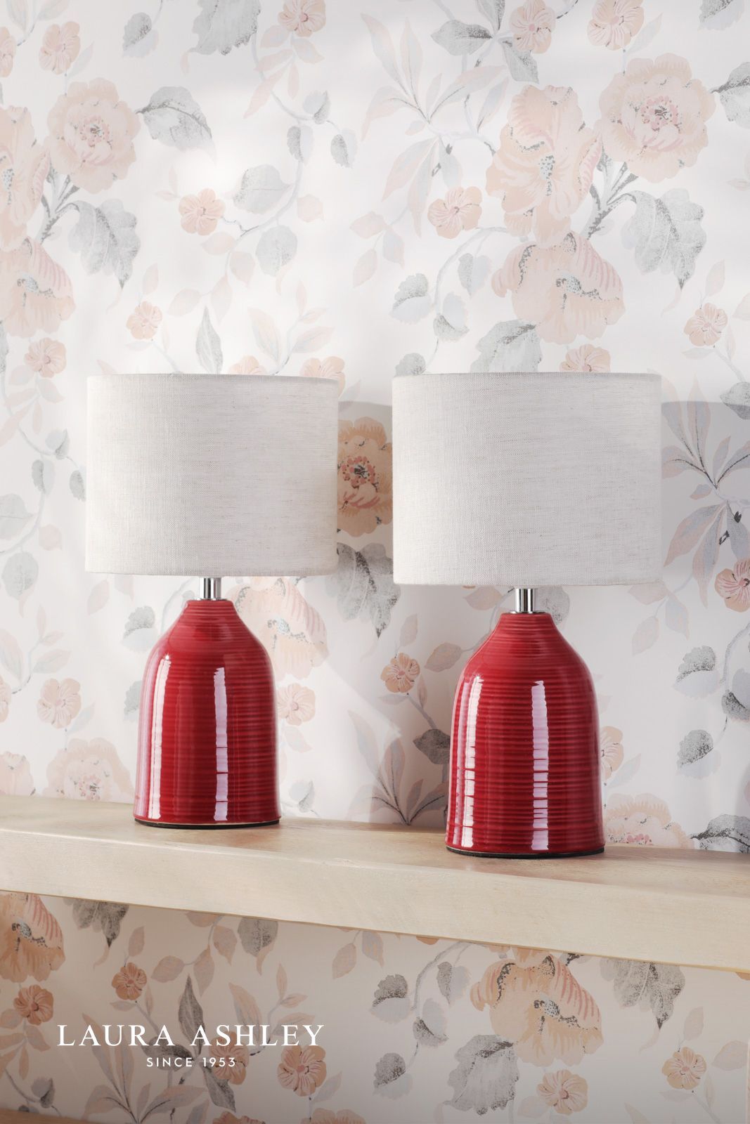 Laura Ashley Penny Table Lamp Red Ceramic and Polished Chrome With Shade (Twin Pack)