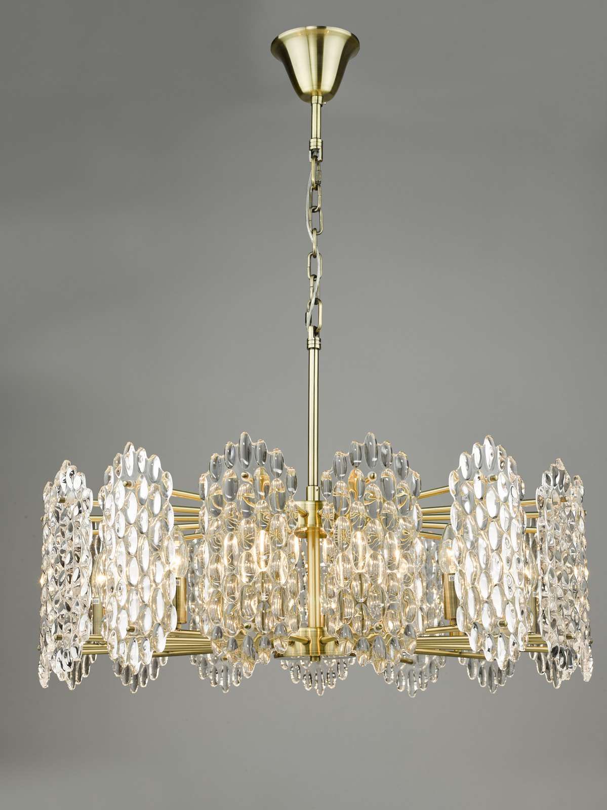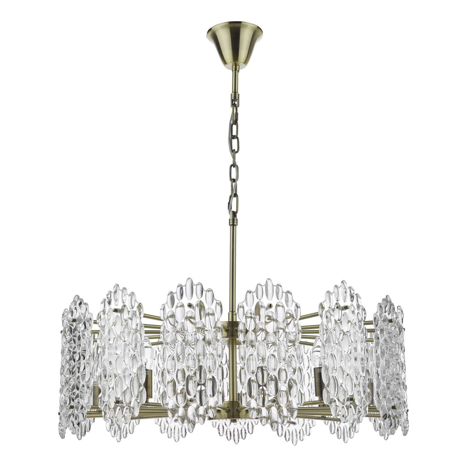Porthos 15 Light Pendant Antique Brass Glass