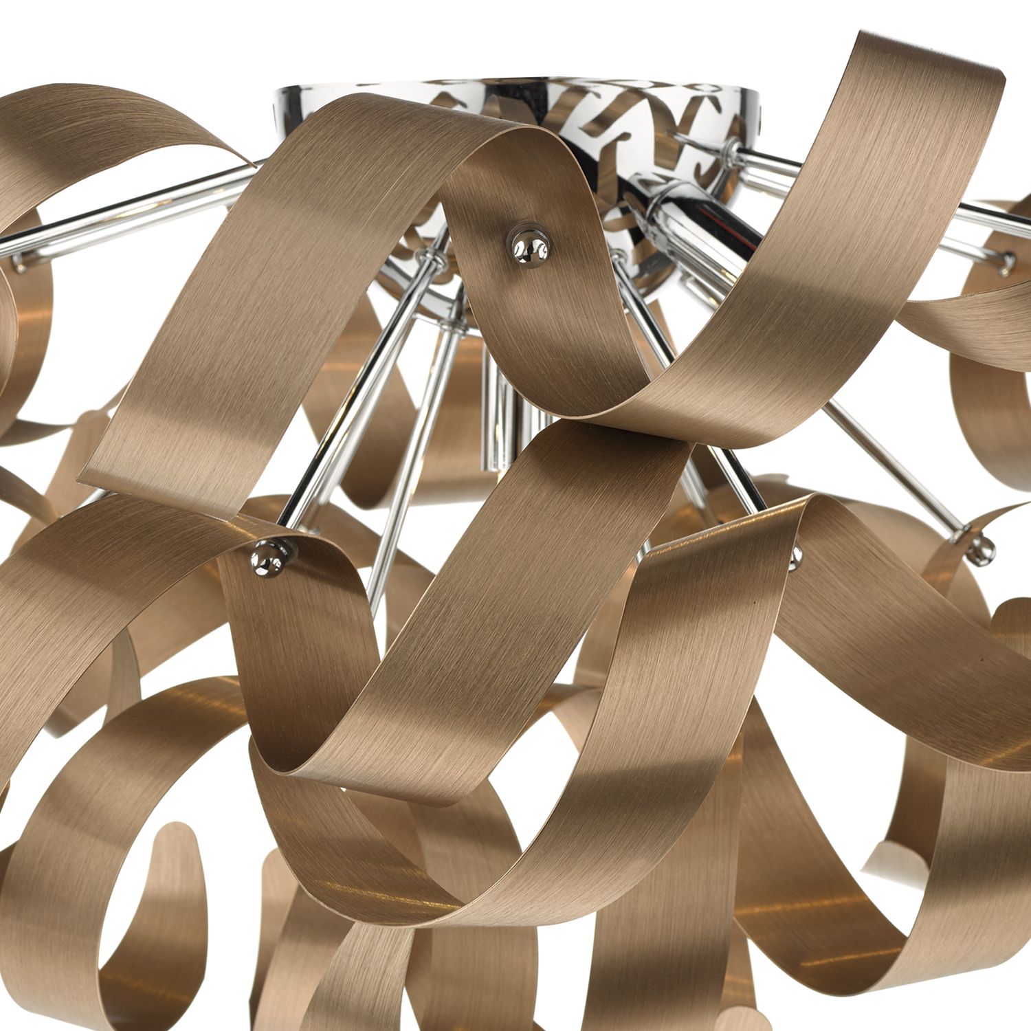 The Rawley 5 Light Flush makes a bold, sculptural statement with its flowing ribbon design. Finished in brushed copper, layered metal bands curl and overlap to create depth, movement and a warm, ambient glow. Set against a polished chrome frame, the contrasting finishes add a refined contemporary edge. With a generous 60cm diameter, Rawley is ideal for living rooms or bedrooms, delivering decorative impact while sitting neatly close to the ceiling.