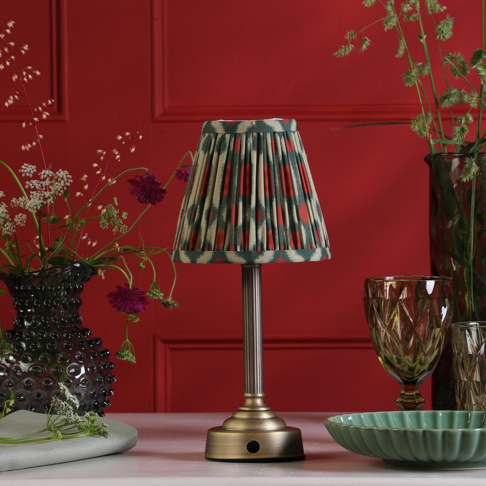 Illuminate any corner of your home with the Virgil Rechargeable Table Lamp from dar lighting. This versatile lamp brings light where there's no socket, freeing you from the tyranny of power cords. With its matt antique brass base and ikat, pleated shade, the Virgil Table Lamp will bring add a contemporary touch of colour to your space. The 3-stage touch dimmer lets you set the perfect ambiance, while the efficient LED bulb keeps energy bills low. Charge it up via USB-C, and enjoy up to 7 hours of cordless lighting. Perfect for creating a cosy nook indoors or adding a warm glow to your garden party (just remember it's not waterproof!). With dar lighting's Virgil, you're not just buying a lamp - you're investing in freedom and flexibility.