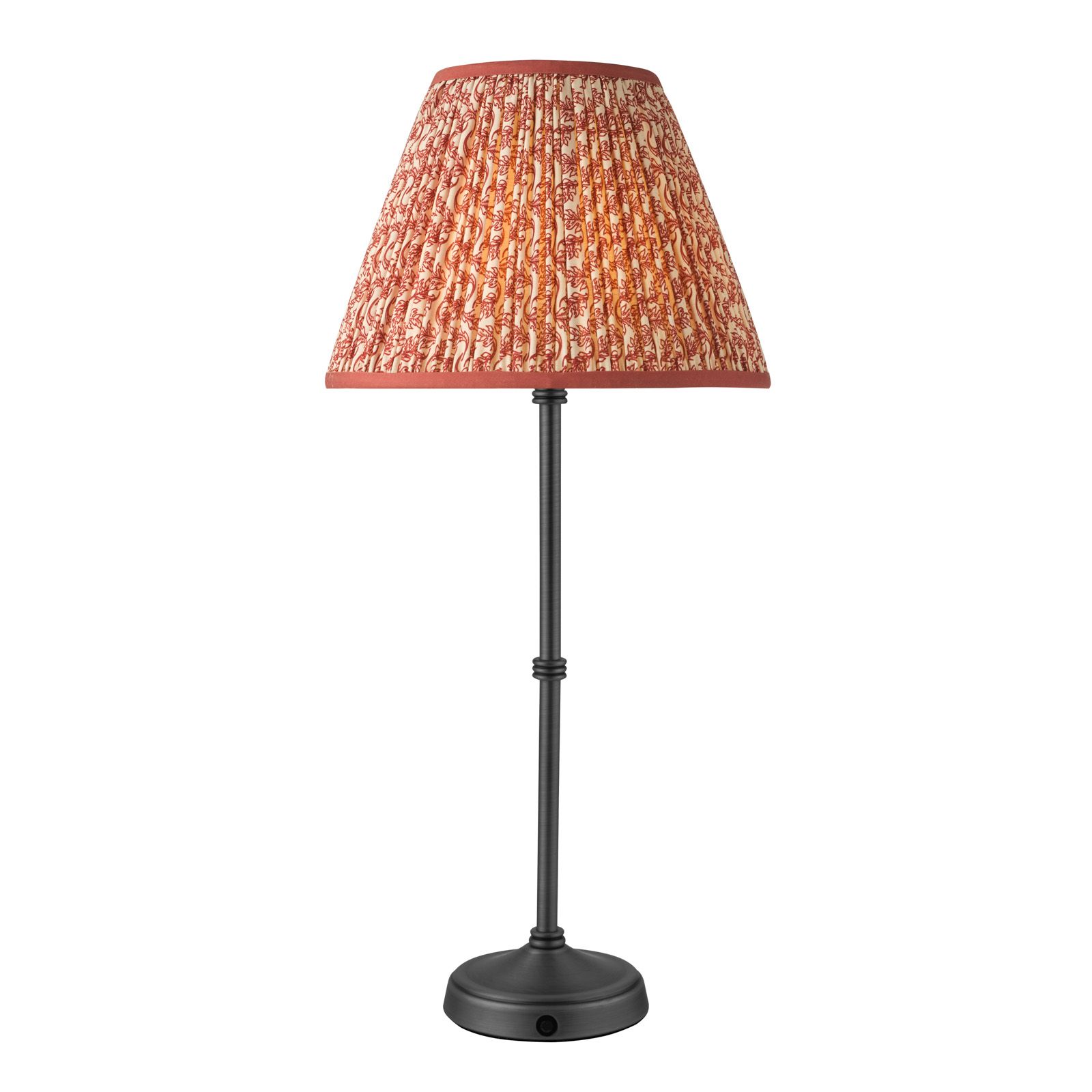The Dahl rechargeable table lamp offers stylish, portable lighting with a classic matt black finish. Perfect for areas without plug sockets or occasional outdoor use (not waterproof), it provides up to 8 hours of warm illumination on a single charge via USB-C. A 3-stage touch dimmer allows you to set the ideal ambience, while the design can be paired with your choice of shade up to 25cm for a personalised look. Compact and versatile, the Dahl is perfect for reading in bed, dining al fresco, or adding a touch of elegance to any corner of the home.