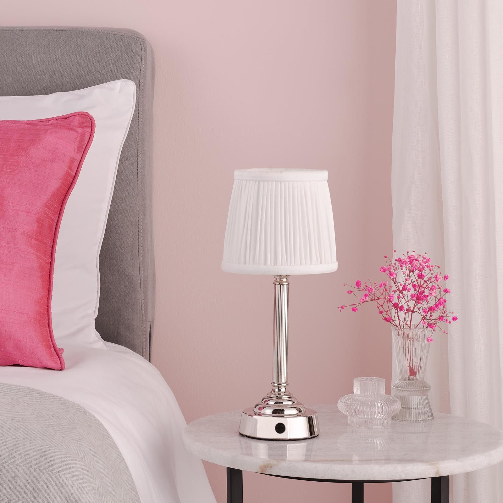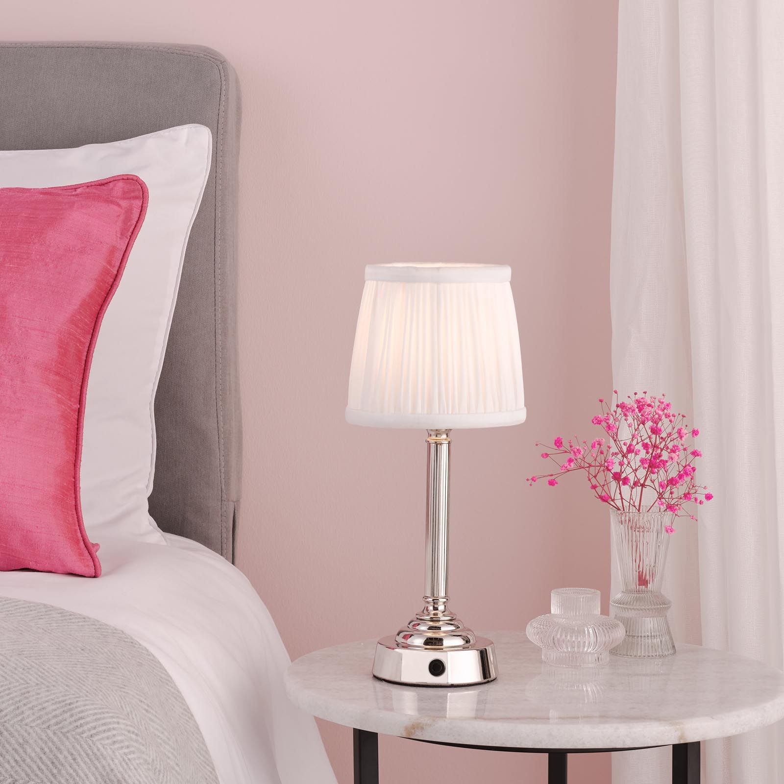 Virgil Rechargeable Table Lamp Polished Nickel With Shade LED
