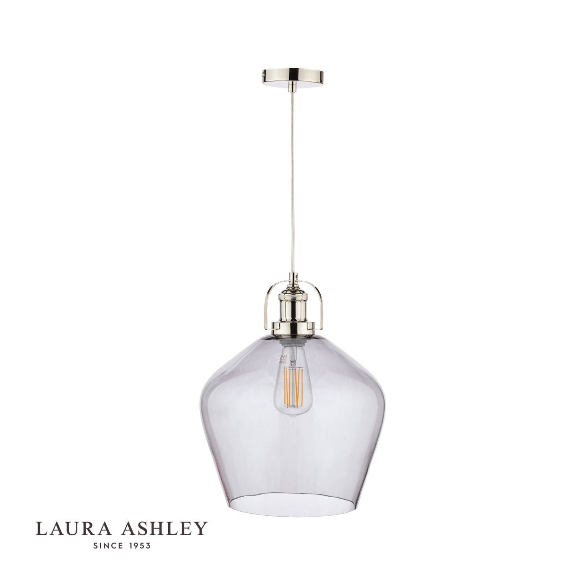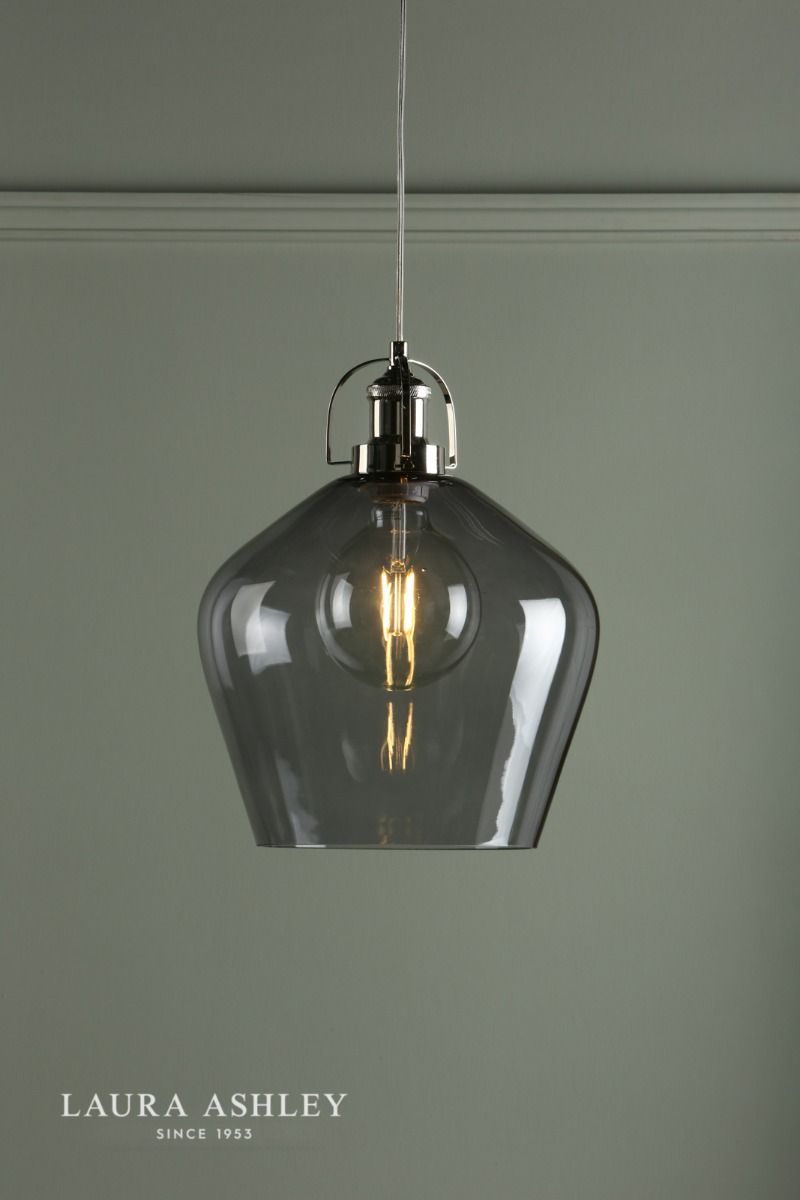 Laura Ashley Rye Pendant Polished Nickel Smoked Glass