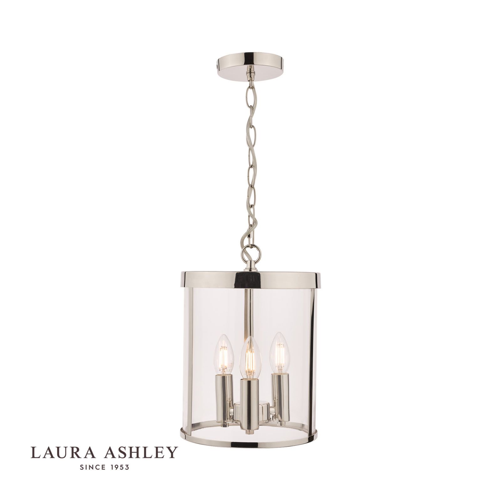 Laura Ashley Selbourne 3lt Lantern Polished Nickel Glass
