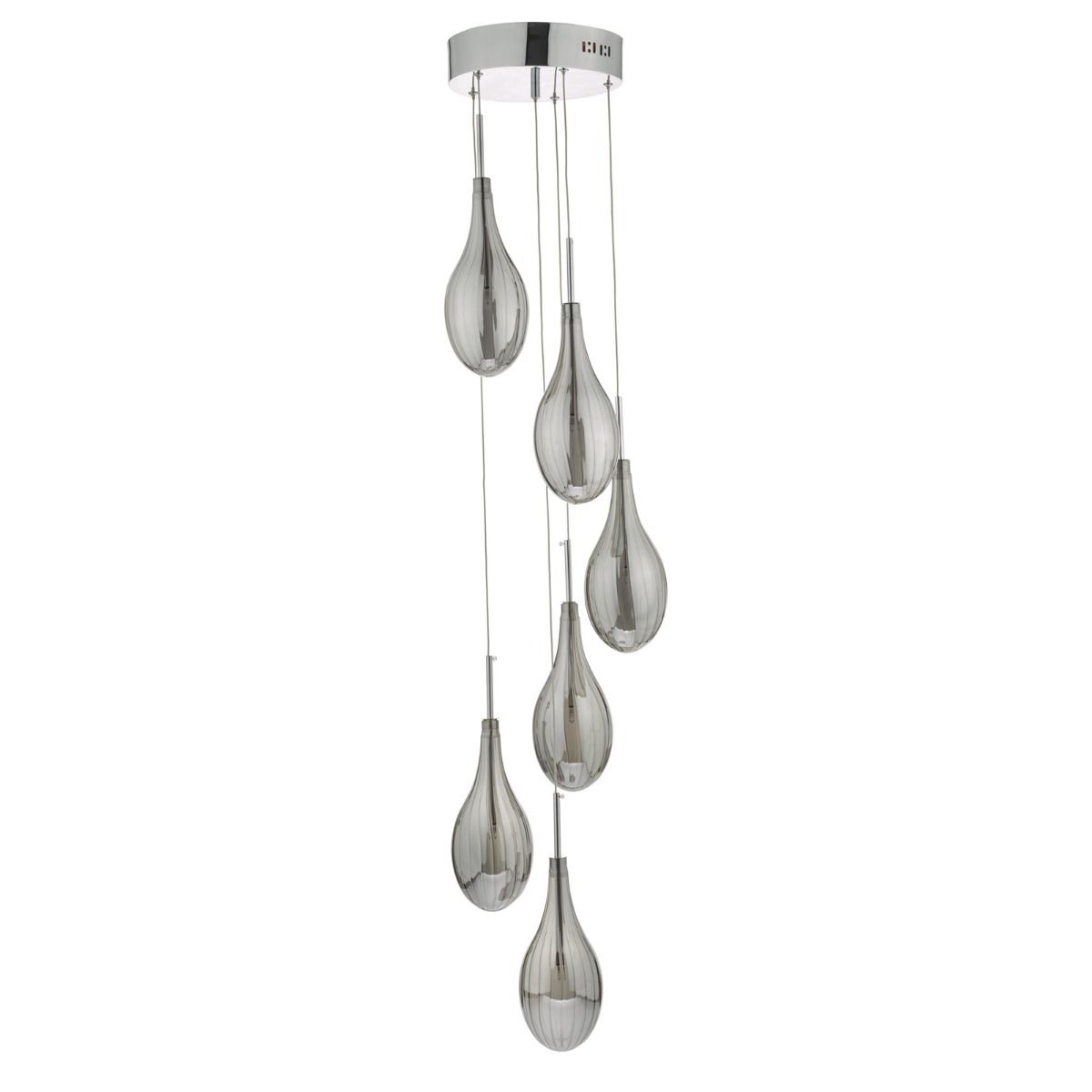 Seta 6 Light Cluster Pendant Polished Chrome Smoked Glass