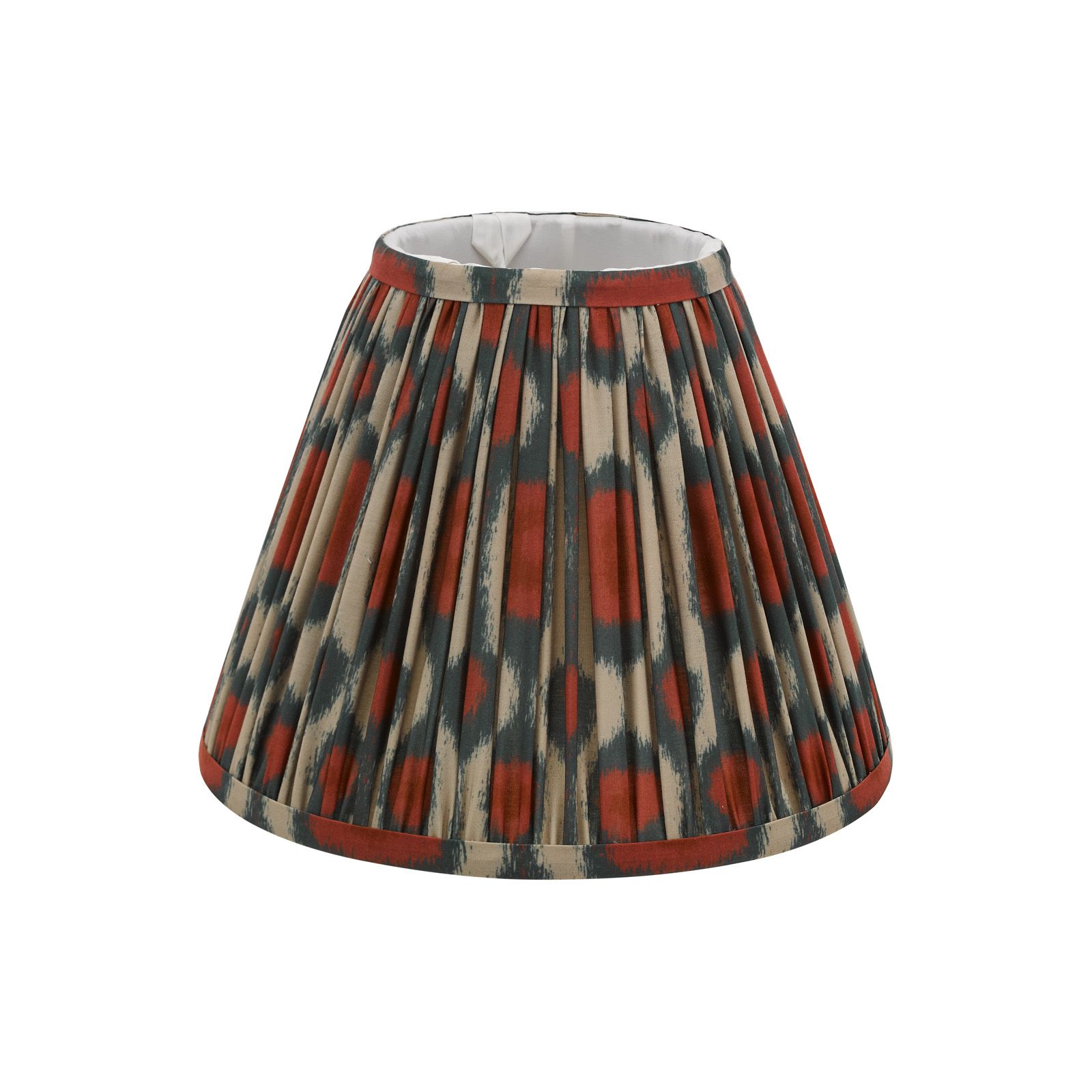 Bring a splash of global chic to your space with this eye-catching lampshade from dar lighting. Featuring a bold red and green ikat pattern set against a golden backdrop, this 25cm tapered drum shade is sure to make a statement. Hand-pleated for added texture and visual interest, it's the perfect way to infuse your room with bohemian flair. The white lining ensures a clean look and even light distribution, while the trendy ikat design adds a touch of worldly sophistication. Whether you're after a striking table lamp or a standout pendant, this red shade is a versatile choice. Part of a complete range, it's easy to create a coordinated lighting scheme throughout your home. Give your lighting a global-inspired upgrade with this show-stopping ikat shade.