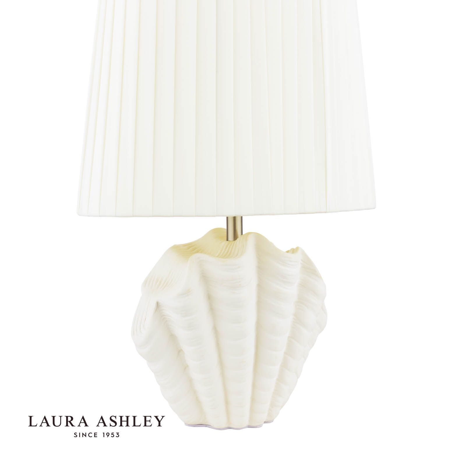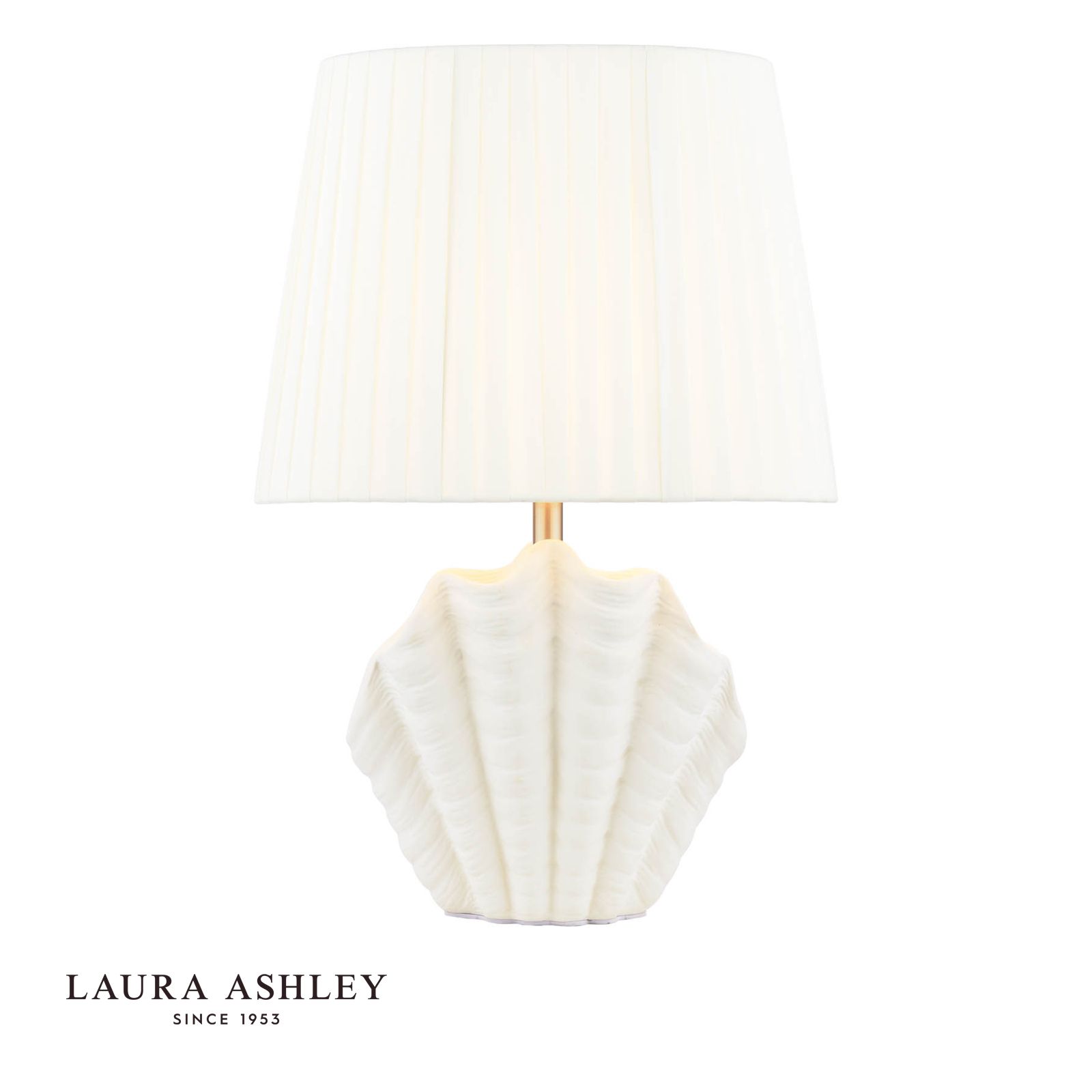 Bring a touch of seaside serenity to your space with this charming Laura Ashley table lamp. The graceful shell-shaped design features a beautifully wrapped shade and textured matte white base that catches light in all the right places. Whether it's brightening up your bedside table or casting a gentle glow from your console, this table lamp creates an inviting atmosphere that's perfect for both reading and relaxing. Laura Ashley's signature attention to detail shines through in every curve of this sophisticated piece, making it an effortless way to add both style and function to any room. The versatile white finish ensures it coordinates seamlessly with your existing decor while adding just the right amount of coastal charm.