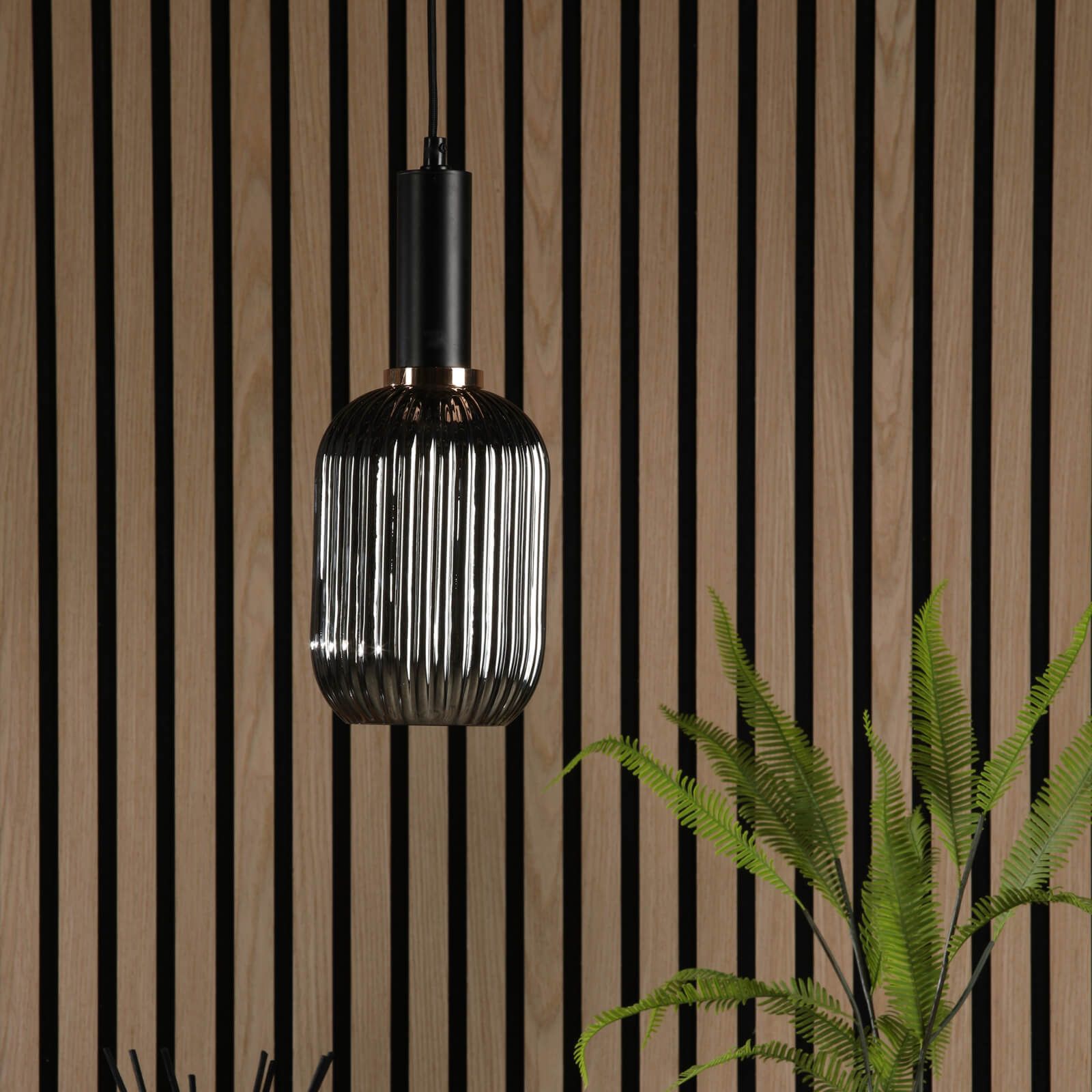 The Sawyer is an Easy Fit Smoked Ribbed Glass Shade with an E27 (standard) opening and metal B22 reducer, use with our range of suspensions and with our Idra Floor or Wall Lamp.