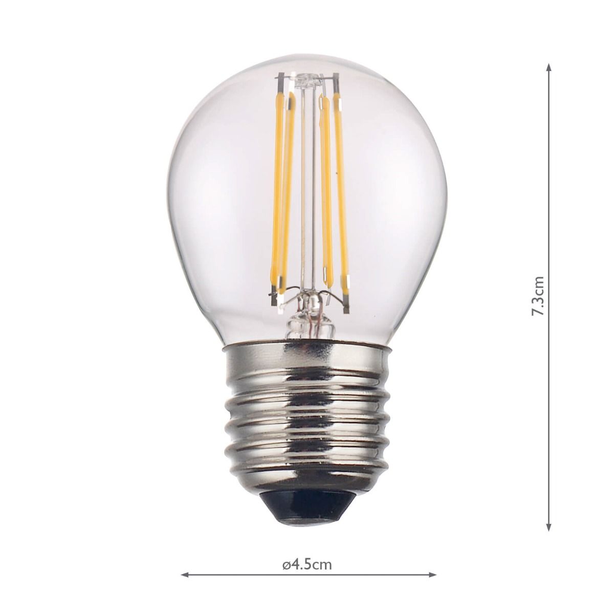 Sold in a Pack of 5 4w E27 / ES LED Golf Ball Lamp Clear 400 Lumen - Equates to 35w Dimmable 2700k Colour Temperature (Warm White) 15,000 Hours Average Lifespan