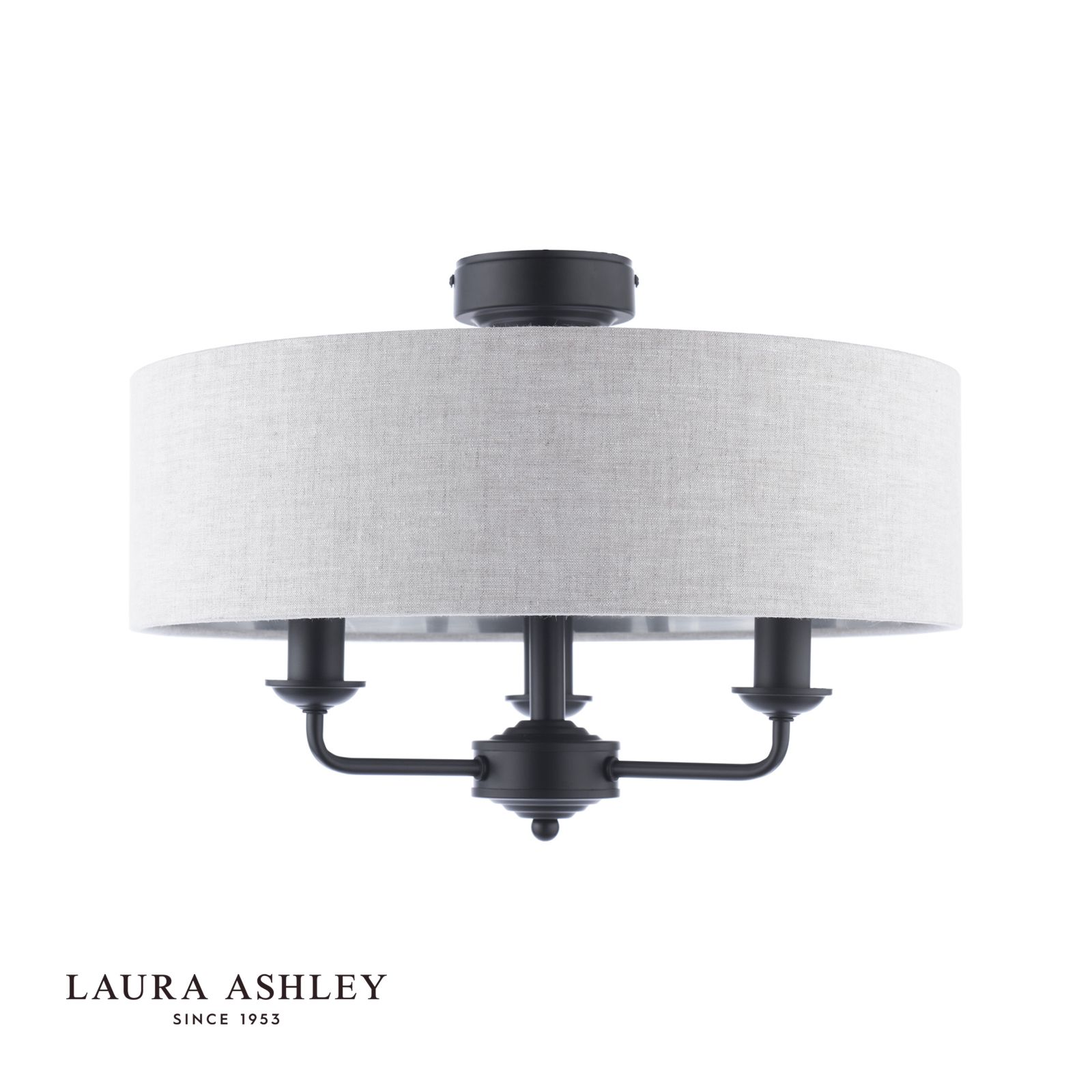 Laura Ashley Sorrento 3 Light Semi-Flush Matt Black With Natural Shade