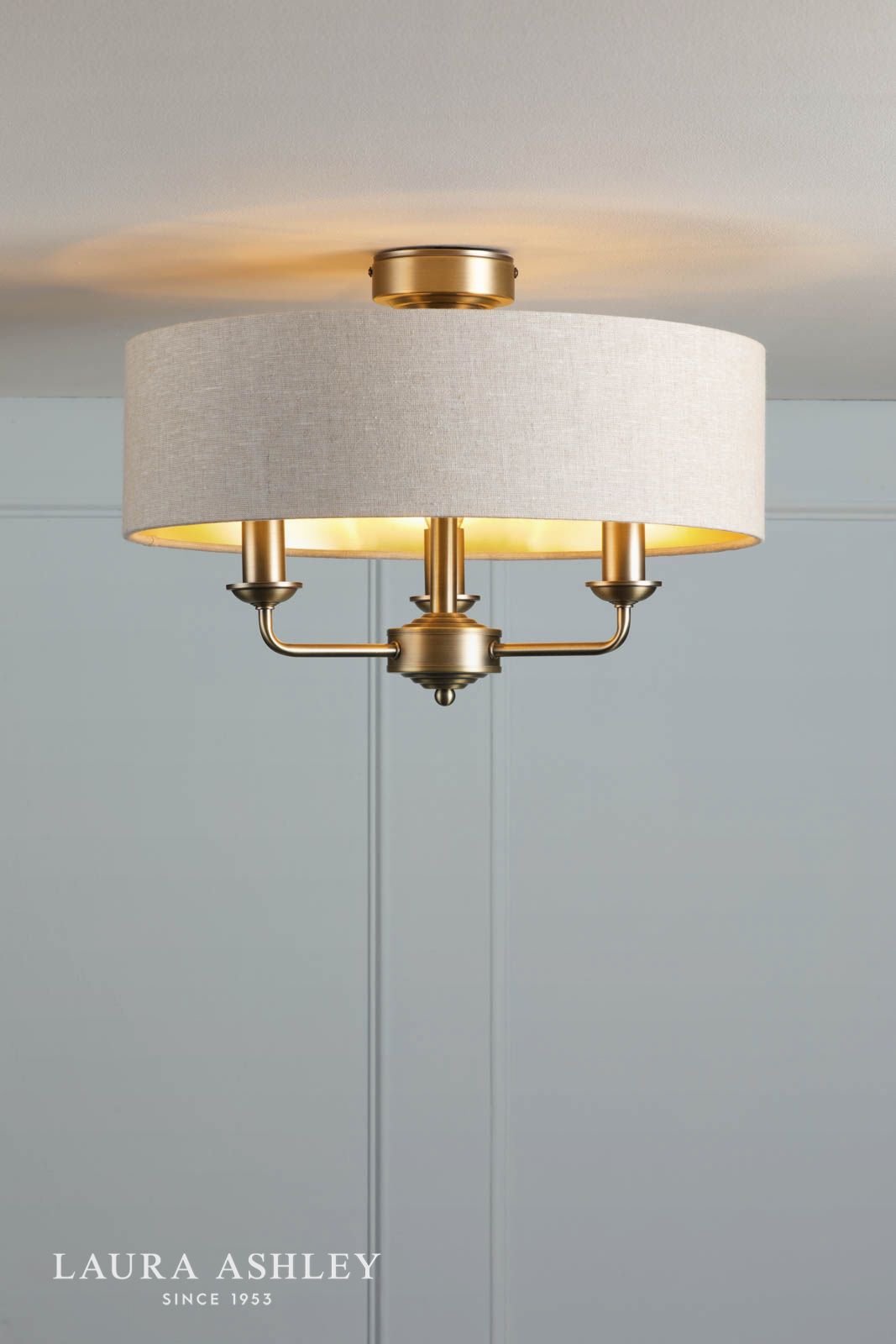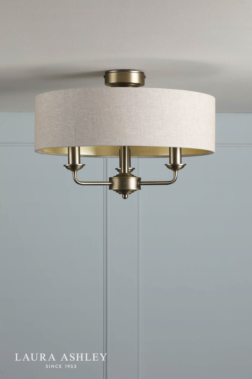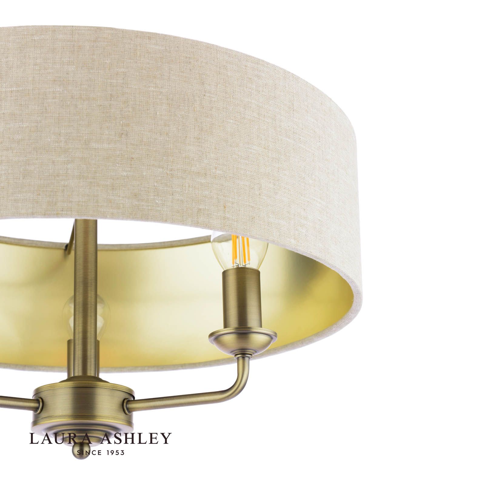 Laura Ashley Sorrento 3 Light Semi-Flush Matt Antique Brass With Natural Shade