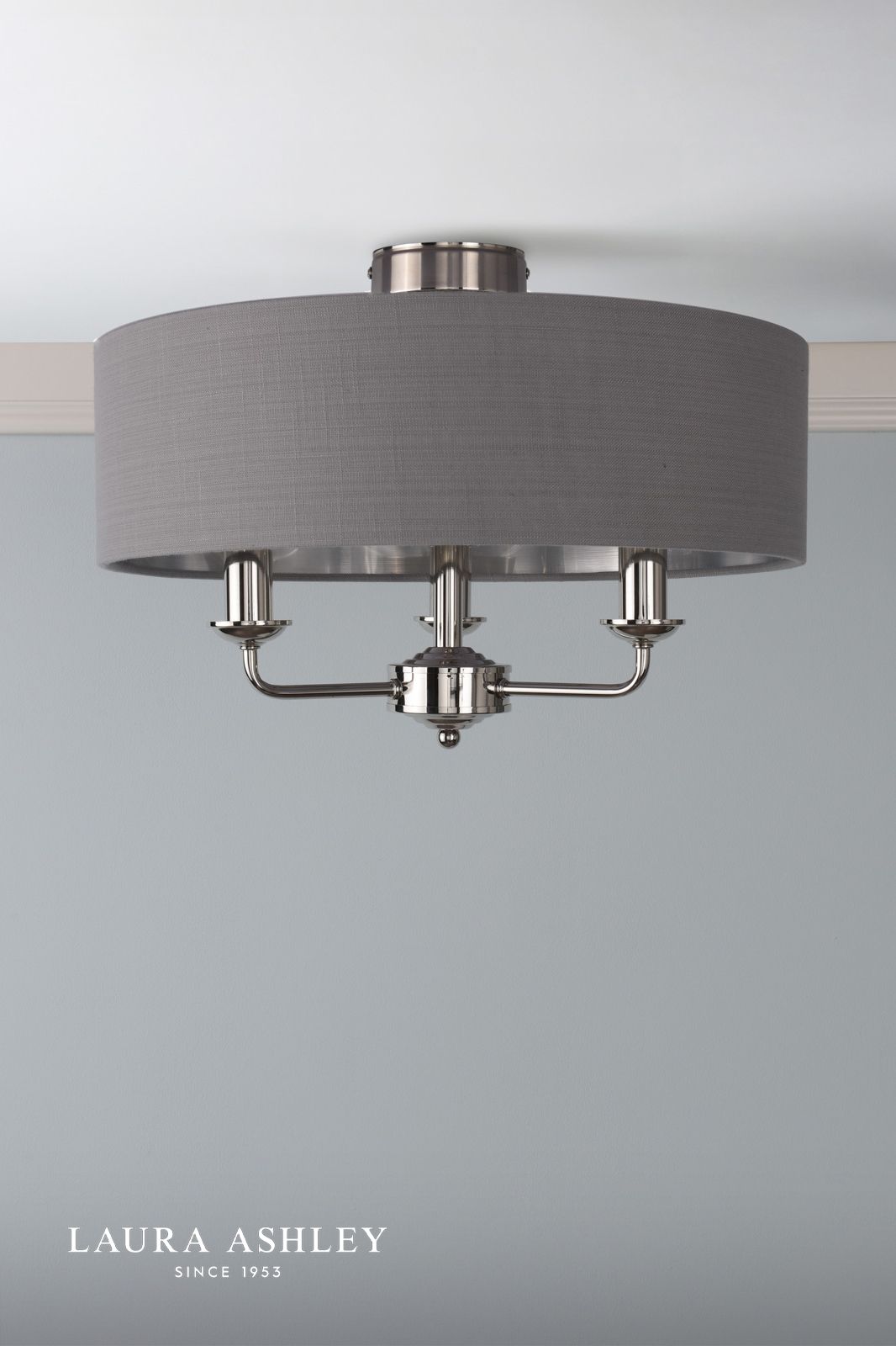 Laura Ashley Sorrento 3 Light Semi-Flush Polished Nickel With Charcoal Shade