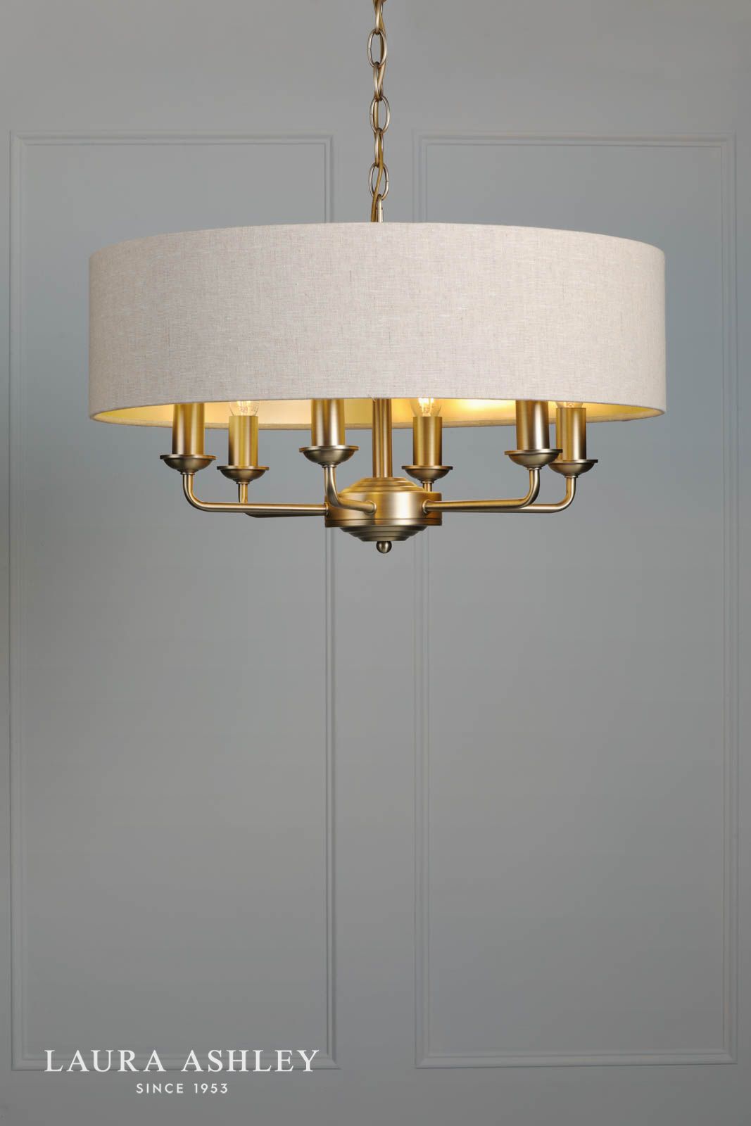 Laura Ashley Sorrento 6 Light Shadelier Matt Antique Brass With Natural Shade