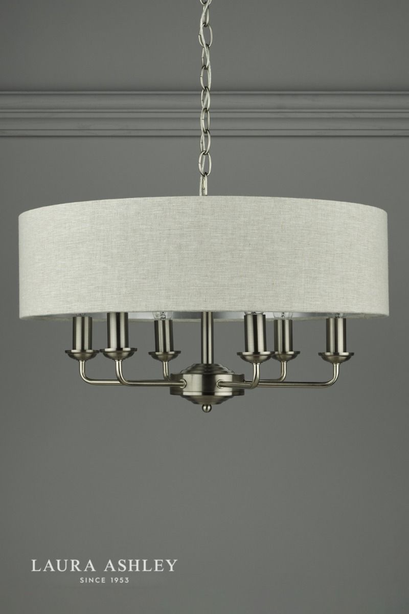 Laura Ashley Sorrento 6 Light Pendant Satin Nickel With Natural Shade
