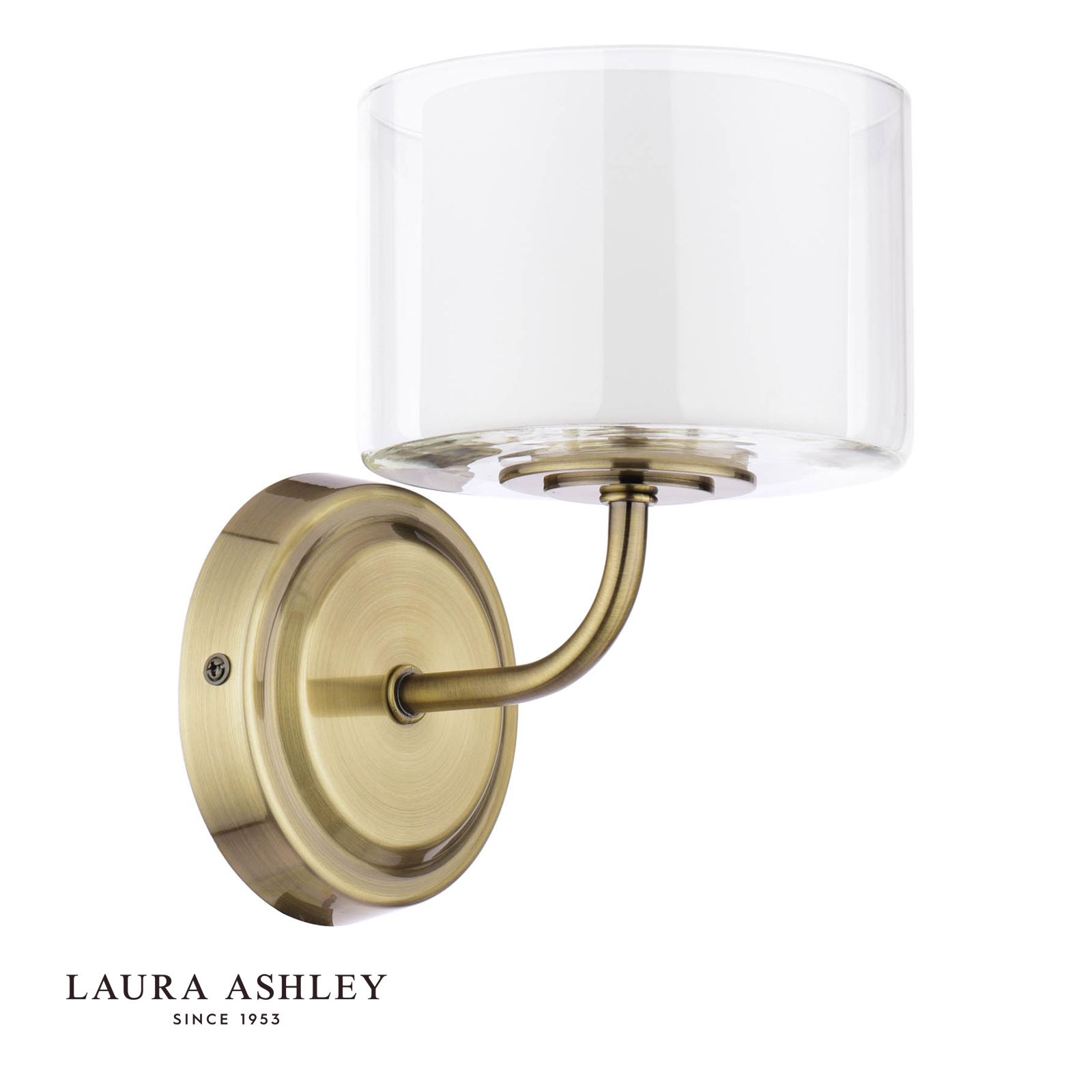 Shed some light on your home's most-loved spaces with the Southwell 1 arm wall light from Laura Ashley. Dressed up in a rich antique brass finish, this stylish wall light brings a refined, vintage-inspired look to living rooms, dining areas and hallways. But its real showstopper is the double-layered shade design: an inner white shade surrounded by a clear glass exterior. Together, they create a soft, layered glow that instantly warms up a space. Place a few Southwell wall lights strategically around a room for an inviting, modern-meets-heritage ambiance.