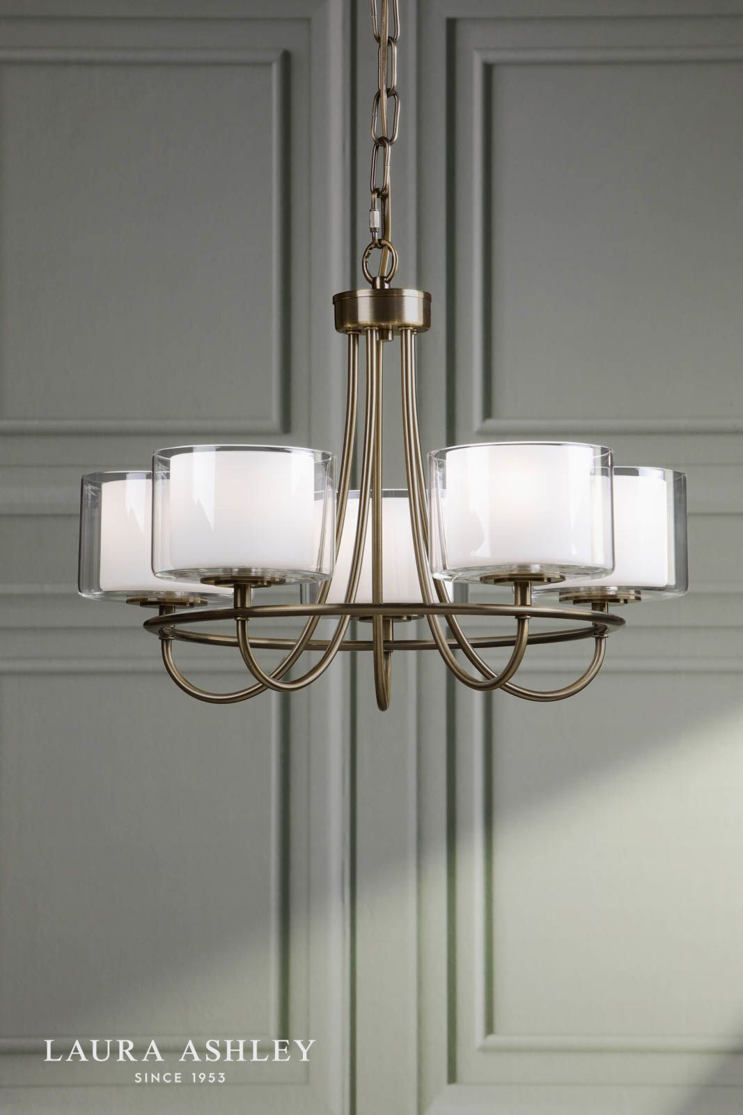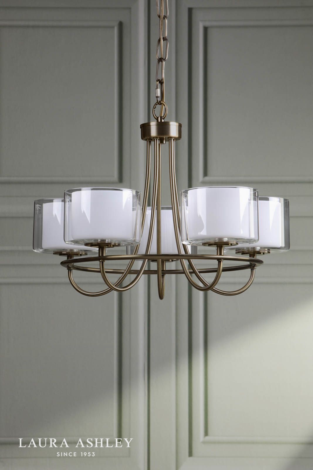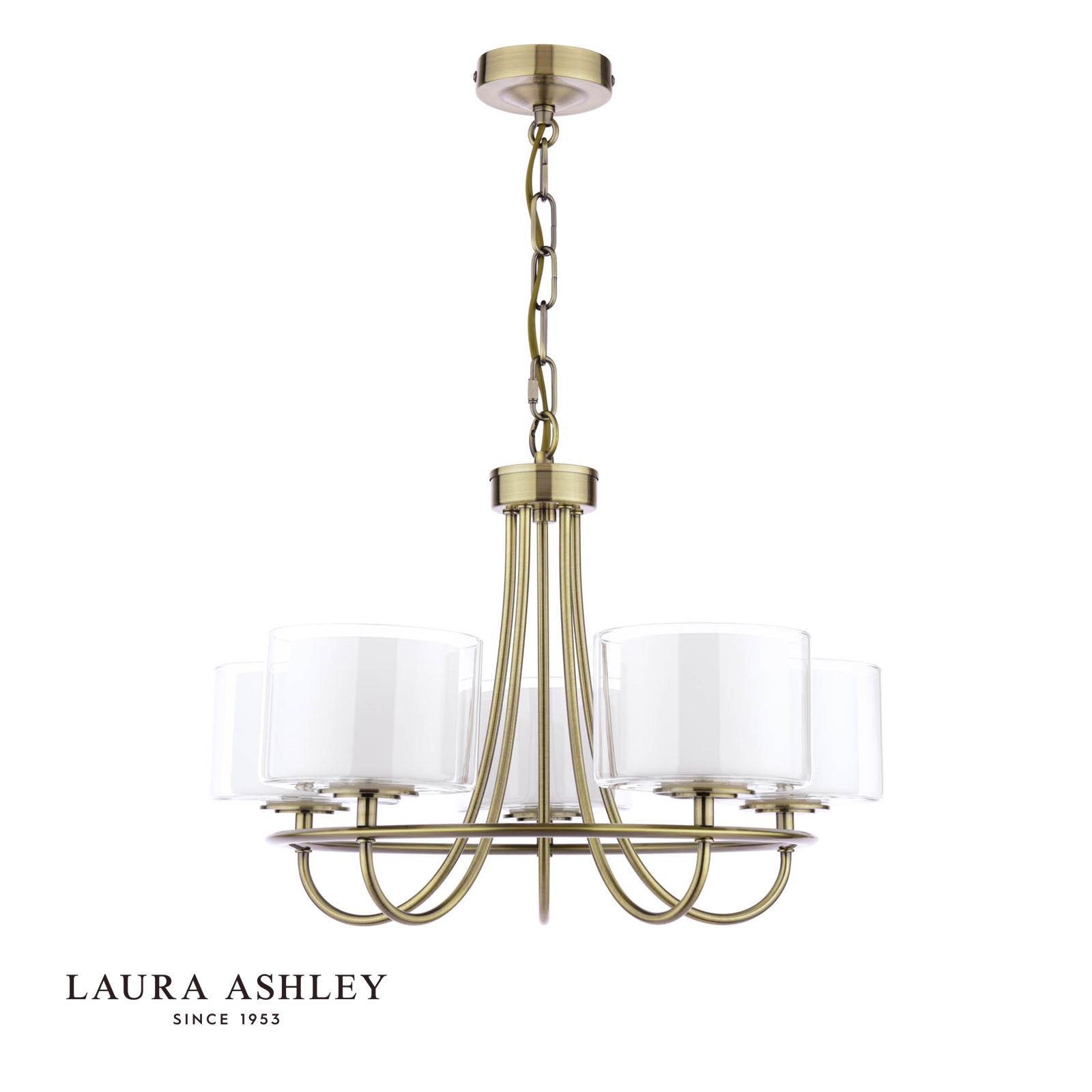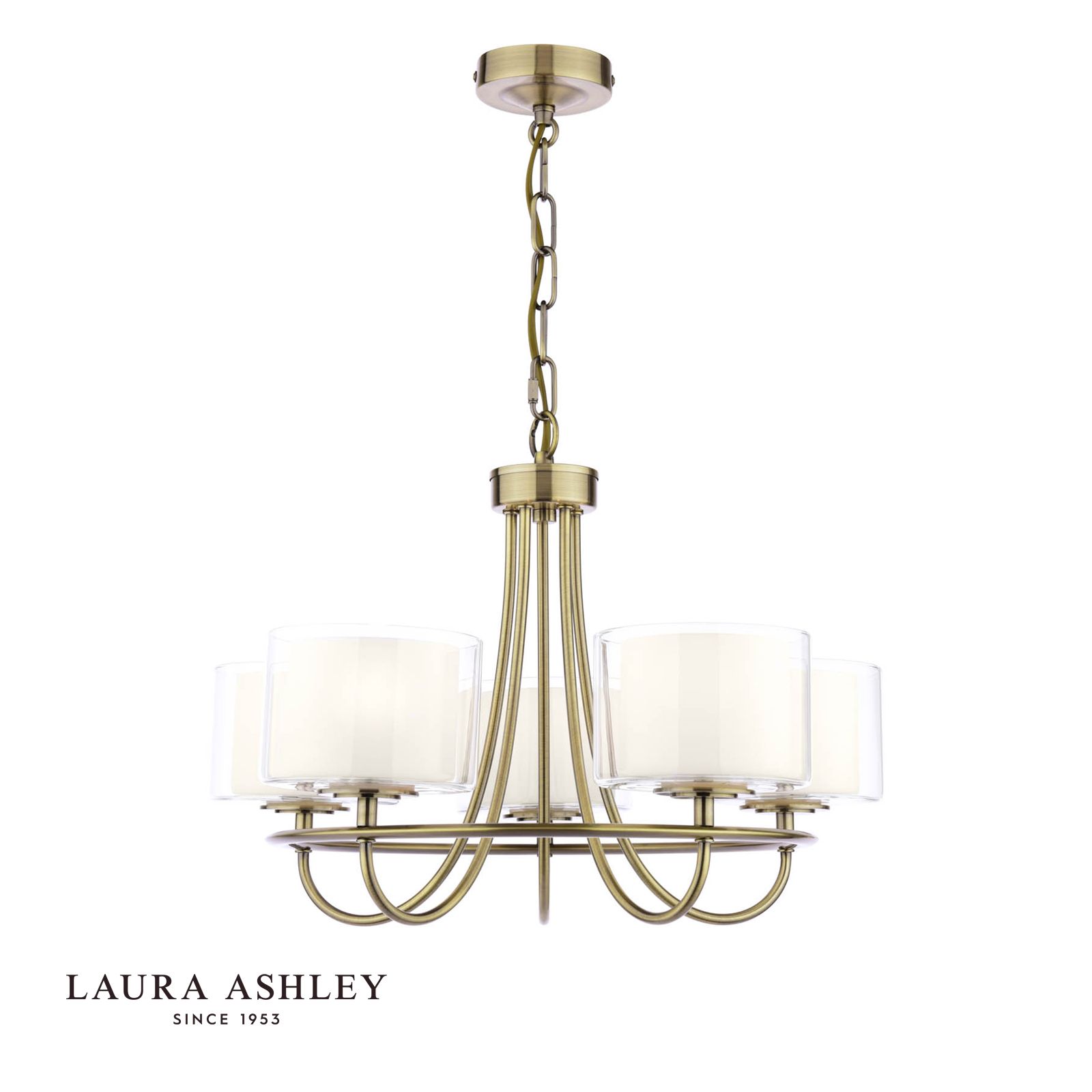 Laura Ashley Southwell 5 Light Armed Pendant Antique Brass and Opal Glass