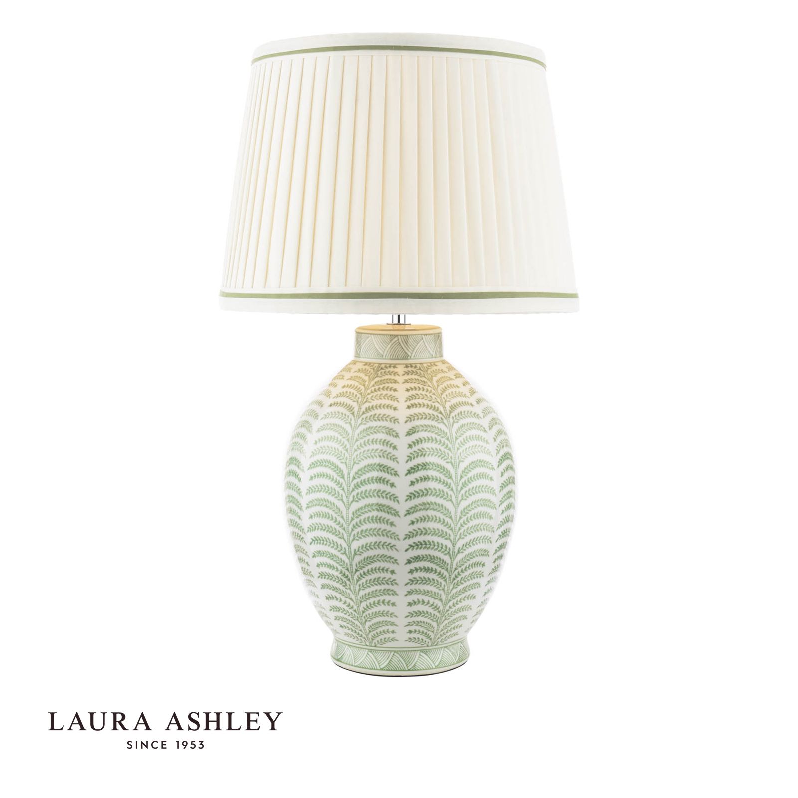 Illuminate your living room or bedroom with the Laura Ashley Stannard Table Lamp. This gorgeous lamp features a large pleated shade with a coloured trim, adding a touch of sophistication to your home. Position it atop an end table or use as a bedside lamp. With its eye-catching print and timeless shape, the Stannard lamp makes a tasteful statement that enhances your decor.