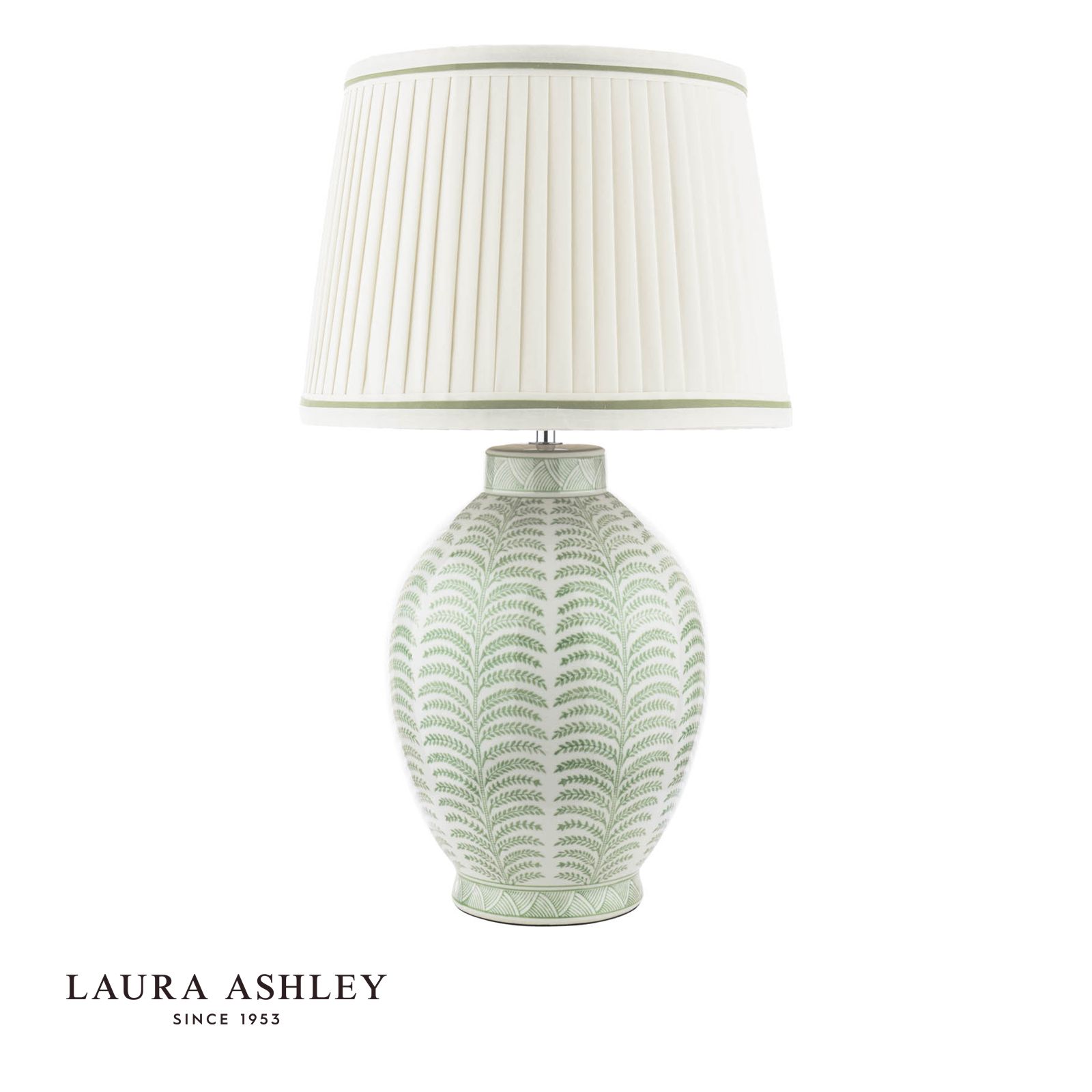 Laura Ashley Stannard Table Lamp Green Ceramic and Polished Chrome With Shade