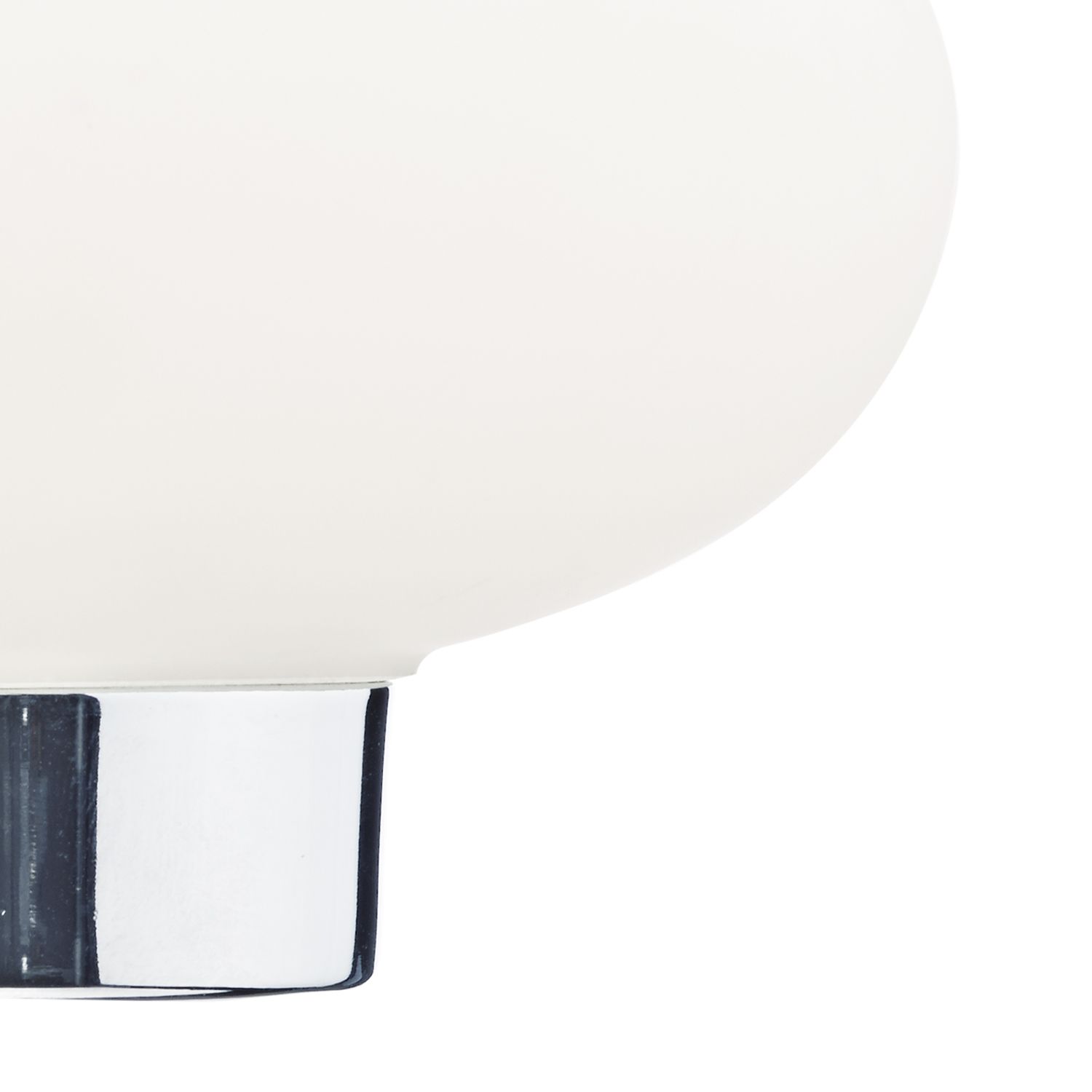 The System Wall Light elegantly merges modern style with a mid-century vibe. Finished in polished chrome, it features a soft white glass shade that diffuses light beautifully, creating a warm ambiance in any room. The compact wall bracket is designed for convenience, with a switch located at the bottom of the backplate for easy access. Ideal for enhancing hallways, bedrooms, or living areas.