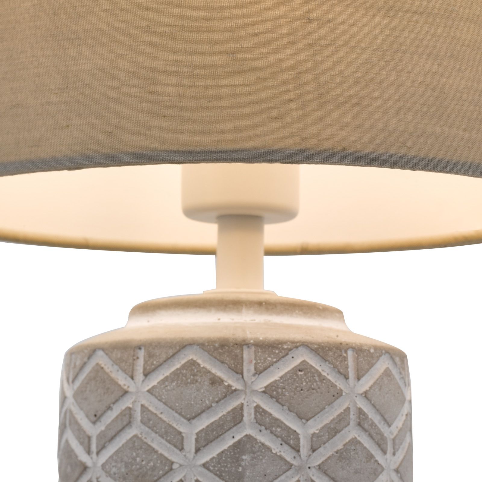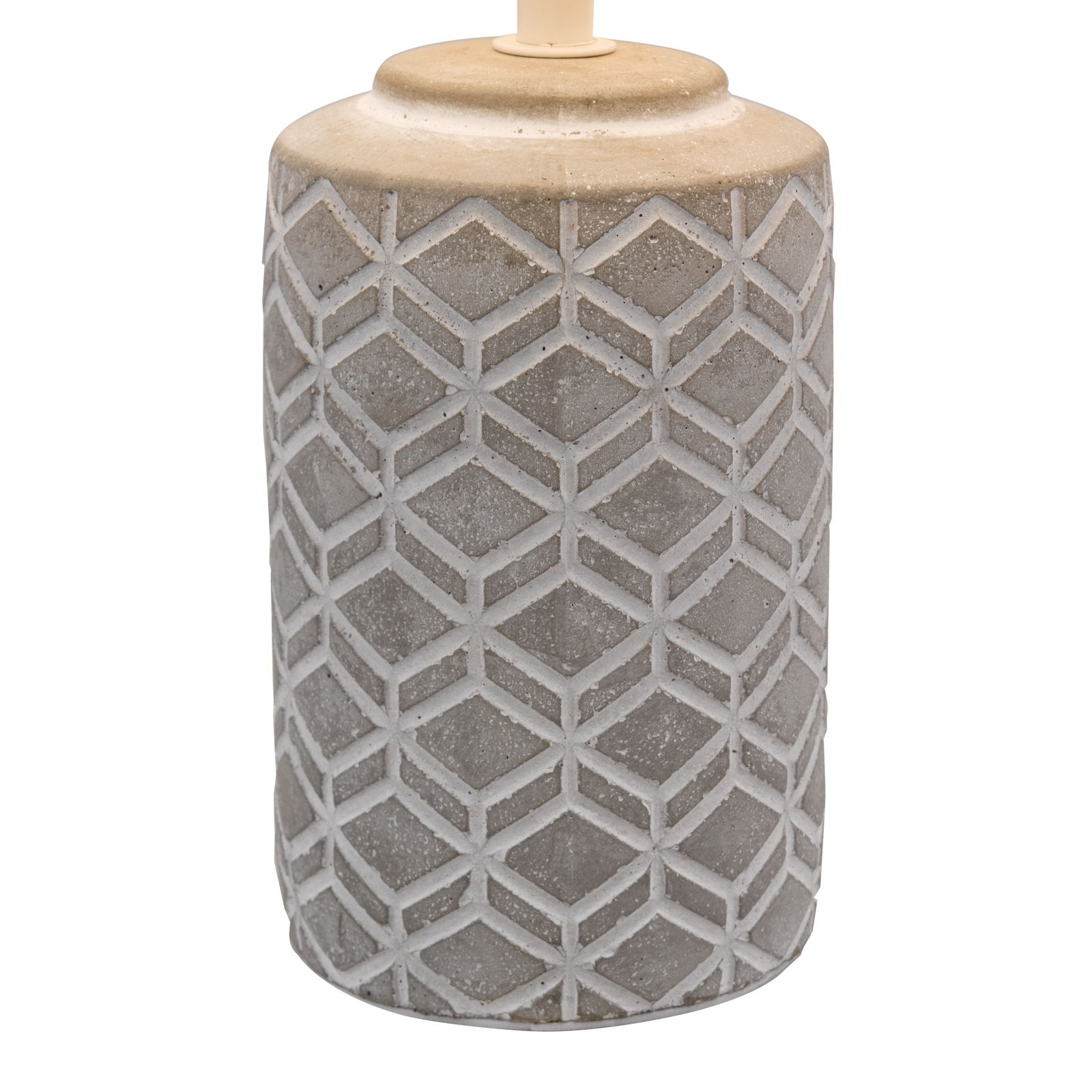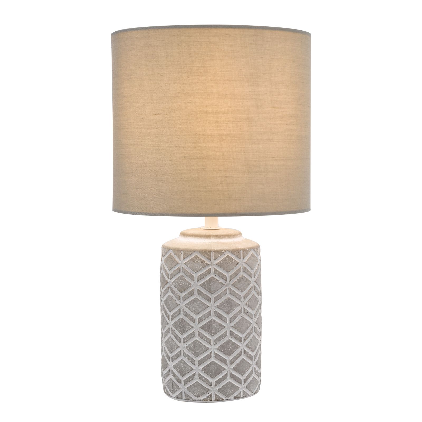 Illuminate your space with industrial chic using the Ilona Table Lamp from dar lighting. This striking bedside light marries rugged grey concrete with a soft cotton shade, creating a harmonious blend of textures. The base features an eye-catching geometric pattern, adding a touch of modern artistry to your bedroom or living area. Practicality meets style with an inline rocker switch for effortless operation. Whether you're curling up with a good book or setting the mood for a relaxing evening, this versatile lamp delivers both form and function. The Ilona Table Lamp's minimalist design makes it a perfect fit for contemporary interiors, while its neutral grey palette ensures it complements a wide range of colour schemes. Elevate your lighting game with this sophisticated piece that's sure to become a talking point in any room.
