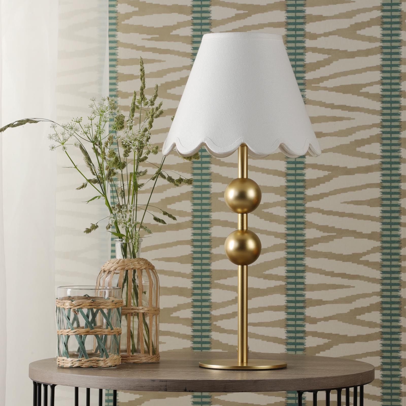 Illuminate your space with the Tilda gold table lamp from dar lighting. This versatile base boasts a luxurious satin gold finish and contemporary sphere details, adding a touch of modern elegance to any room. While the Tilda gold table lamp base comes without a shade, it's the perfect canvas for your personal style - pair it with one of dar lighting's Ikat shades for a coordinated look, or mix and match to suit your taste. For those who love cohesive design, there's a matching ceiling light available too. Start building your dream lighting scheme with this stunning gold table lamp as your centrepiece, and watch as it transforms your space into a warm, inviting haven.