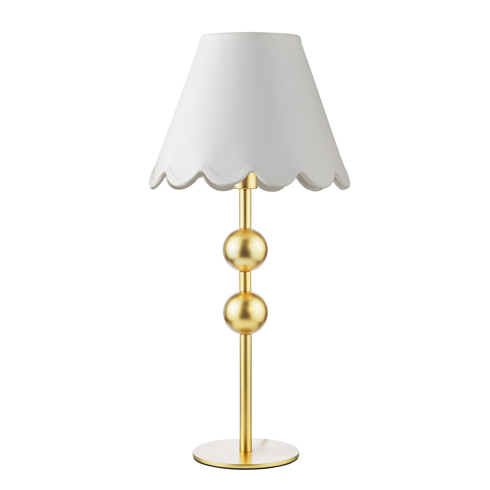 Illuminate your space with the Tilda Table Lamp, beautifully finished with a softly scalloped ivory linen shade. The elegant satin gold base is accented with sculptural sphere details, bringing a refined touch of modern glamour to living rooms, bedrooms or styled sideboards. The neutral shade gently diffuses light, creating a warm, inviting glow that feels both timeless and effortlessly stylish.