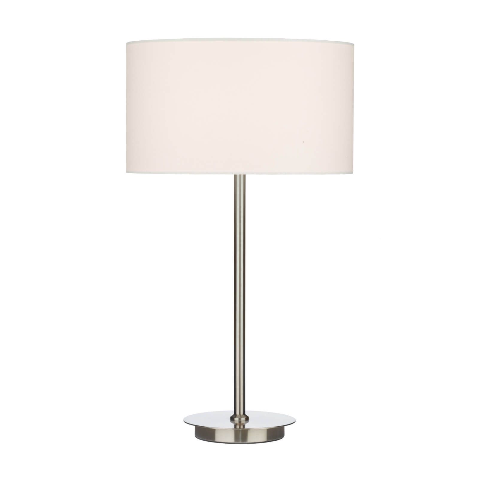 The Tuscantable lamp has a timeless satin chrome base and features a clear cable and in line rocker switch.
