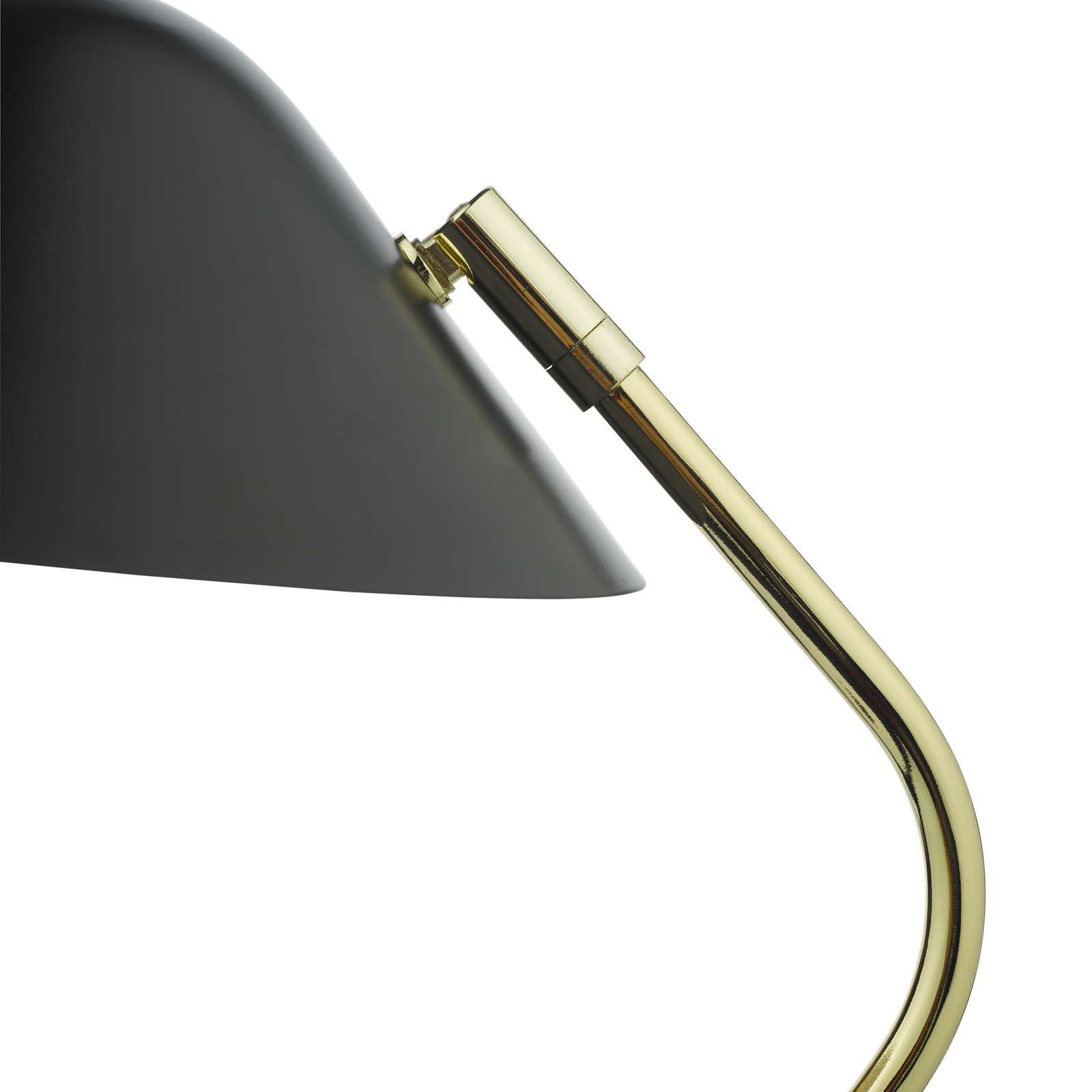 The Erna Task Lamp draws inspiration from late 20th-century design, showcasing a striking black cone shade that is fully adjustable for customised lighting. The elegant gold stem mirrors the profile of the shade, connecting to a stable round base for added stability. Designed with a chunky toggle switch in matching gold, it offers easy operation. Fitted with a black fabric cable, the Erna is perfect for brightening up your home office or study desk, combining style and functionality in one chic package.
