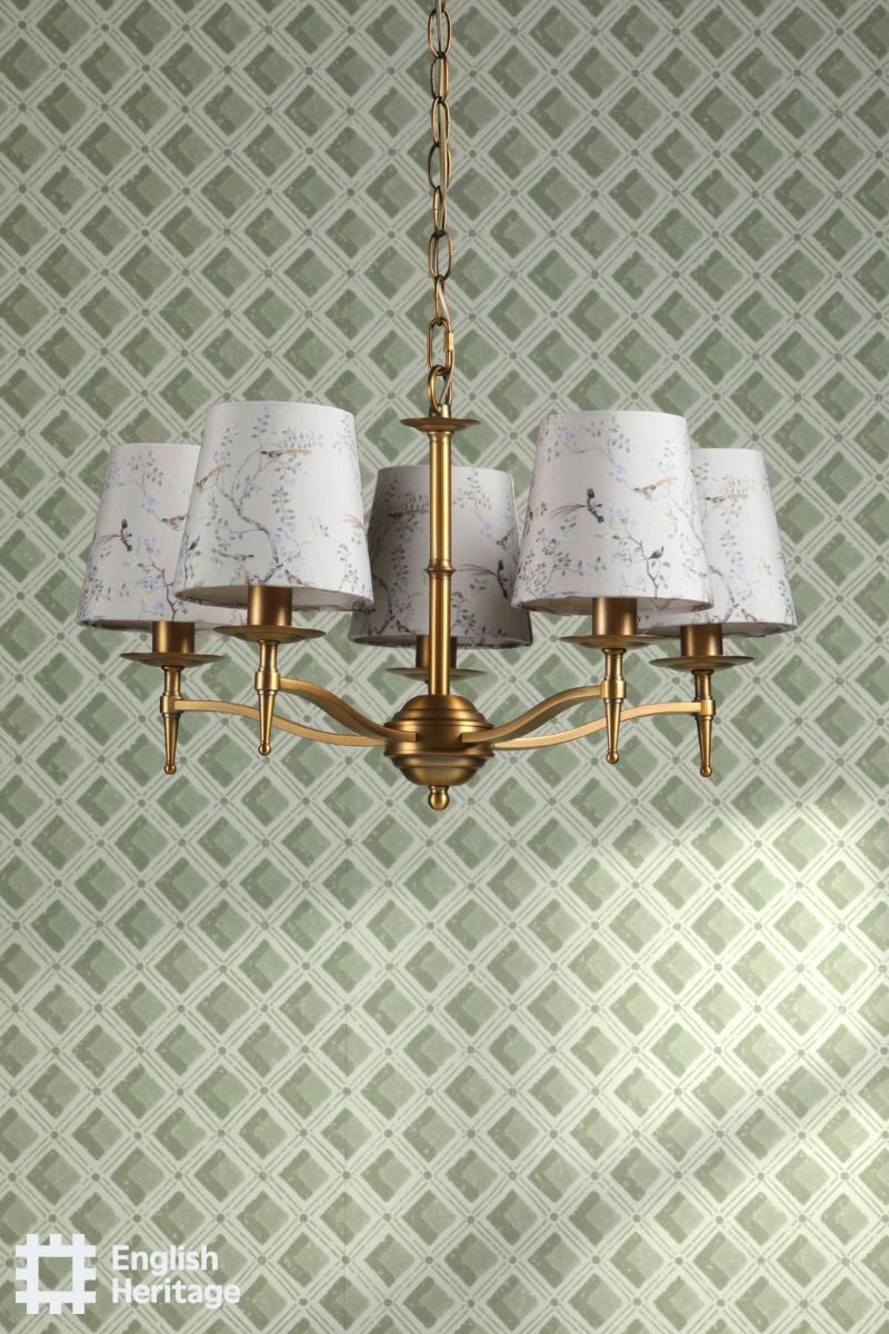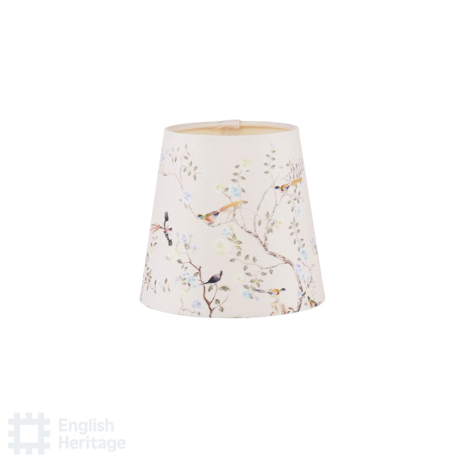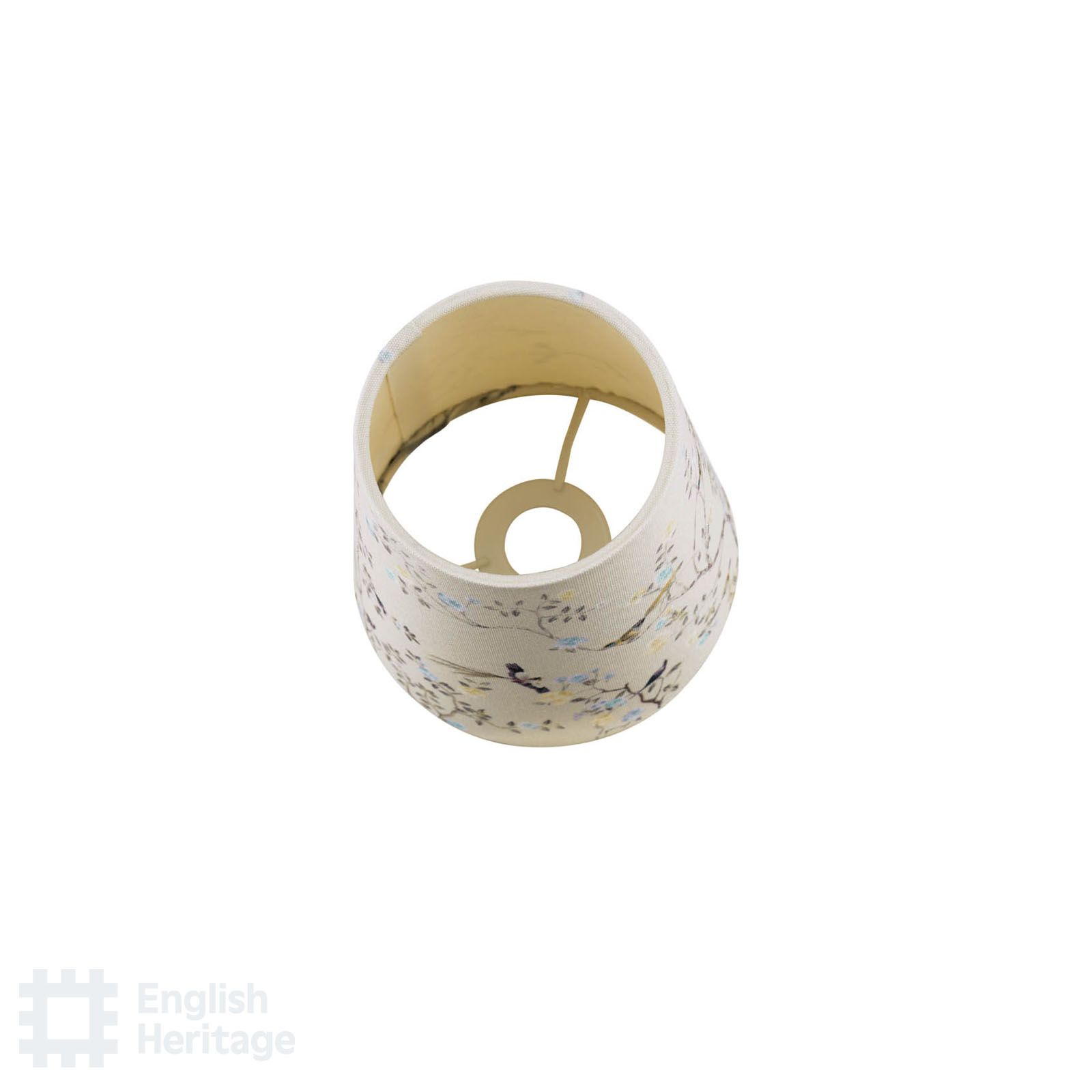 Part of the English Heritage lighting collection, inspired by the historic interiors of Marble Hill House, this decorative shade reflects the elegance and natural motifs found within the house and its gardens. Featuring a delicate bird and branch design, the softly patterned fabric brings a sense of calm and country house tradition to a space. Gently tapered in shape, it diffuses the light to create a warm, inviting glow. Ideal for pairing with our English Heritage table lamp bases and wall brackets, this shade adds character and timeless refinement to living rooms, bedrooms or hallways. Makes a perfect partner to the ceiling lights carrying the same beautiful pattern.