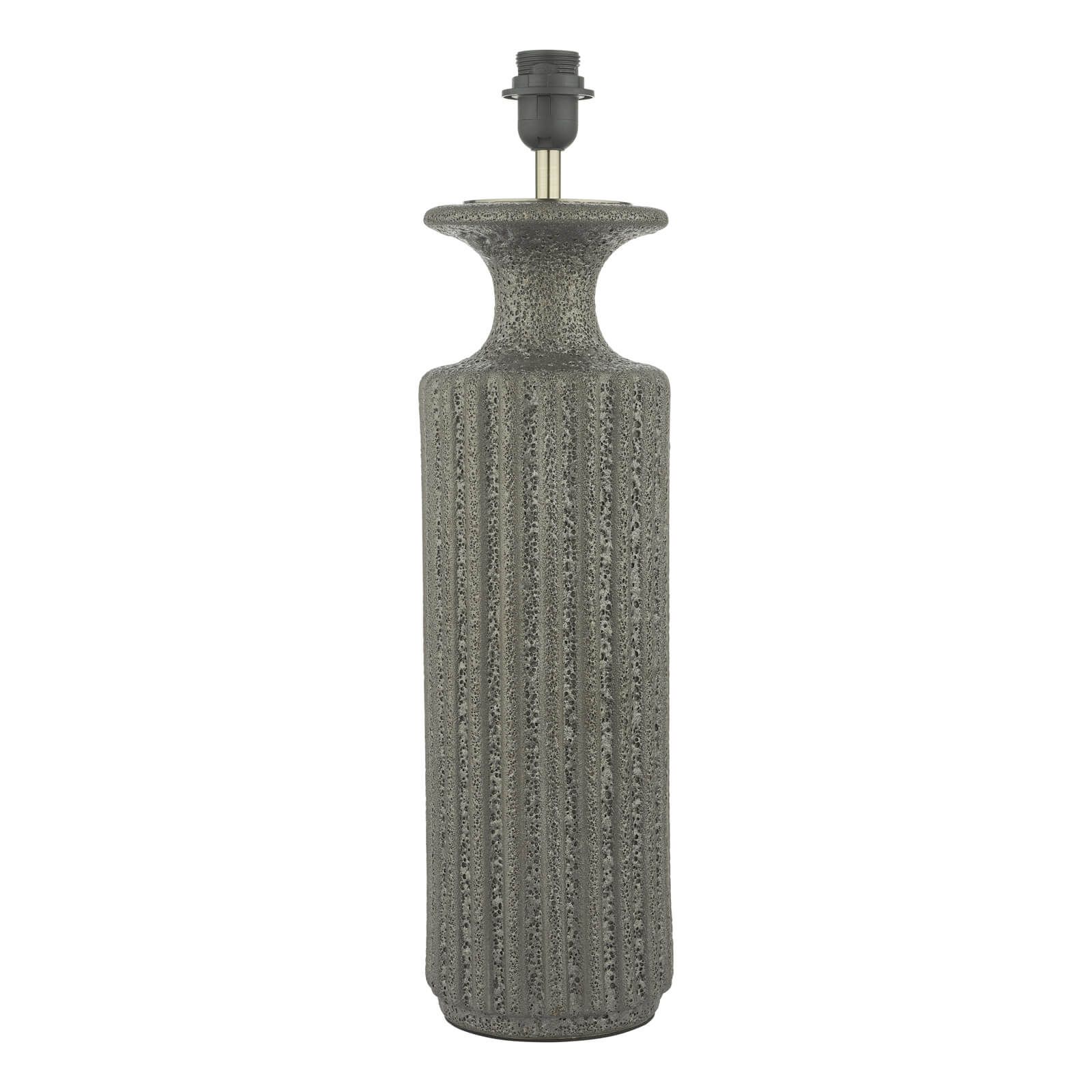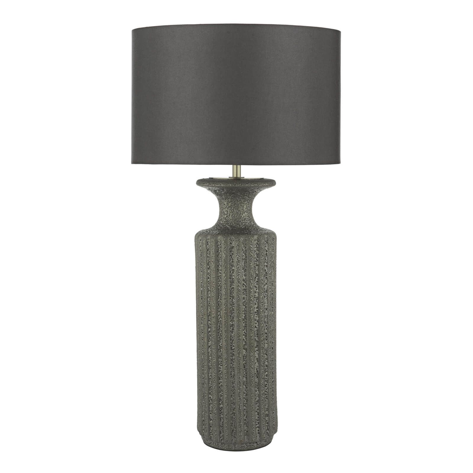 The Dugan Ceramic Table Lamp has a slender retro-inspired design with an extremely tactile volcanic lava glaze. Fitted with a black fabric cable and inline rocker switch for ease of use. Sold here as a base-only table lamp for you to use your own shade or choose from our selection of fine shades.