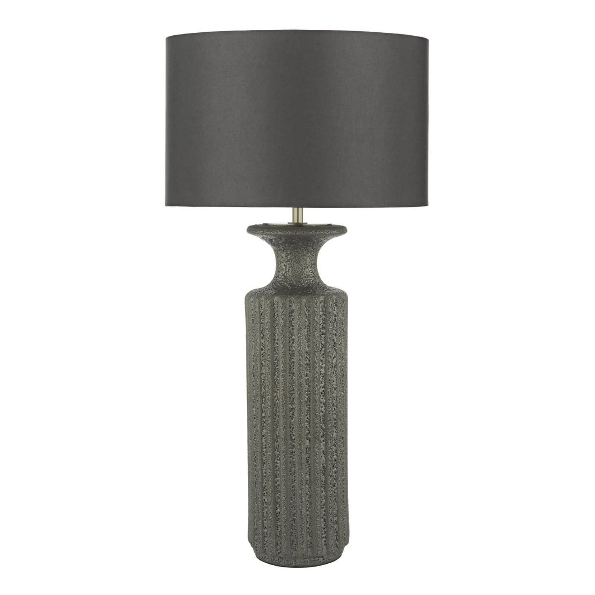 The Dugan Ceramic Table Lamp has a slender retro-inspired design with an extremely tactile volcanic lava glaze. Fitted with a black fabric cable and inline rocker switch for ease of use. Sold here with the Bokara grey faux silk shade. Also available as a base-only table lamp for you to use your own shade or choose from our selection of fine shades.