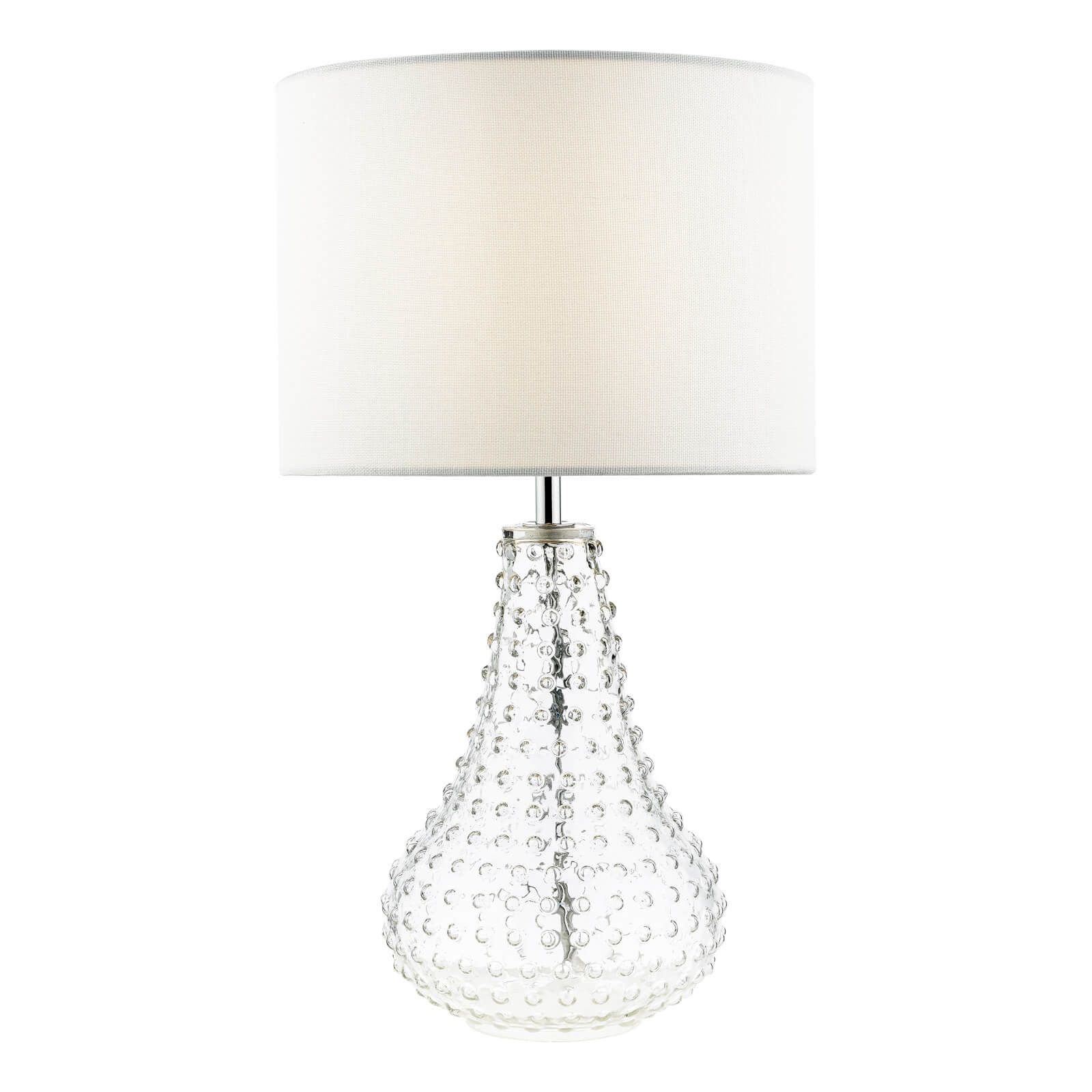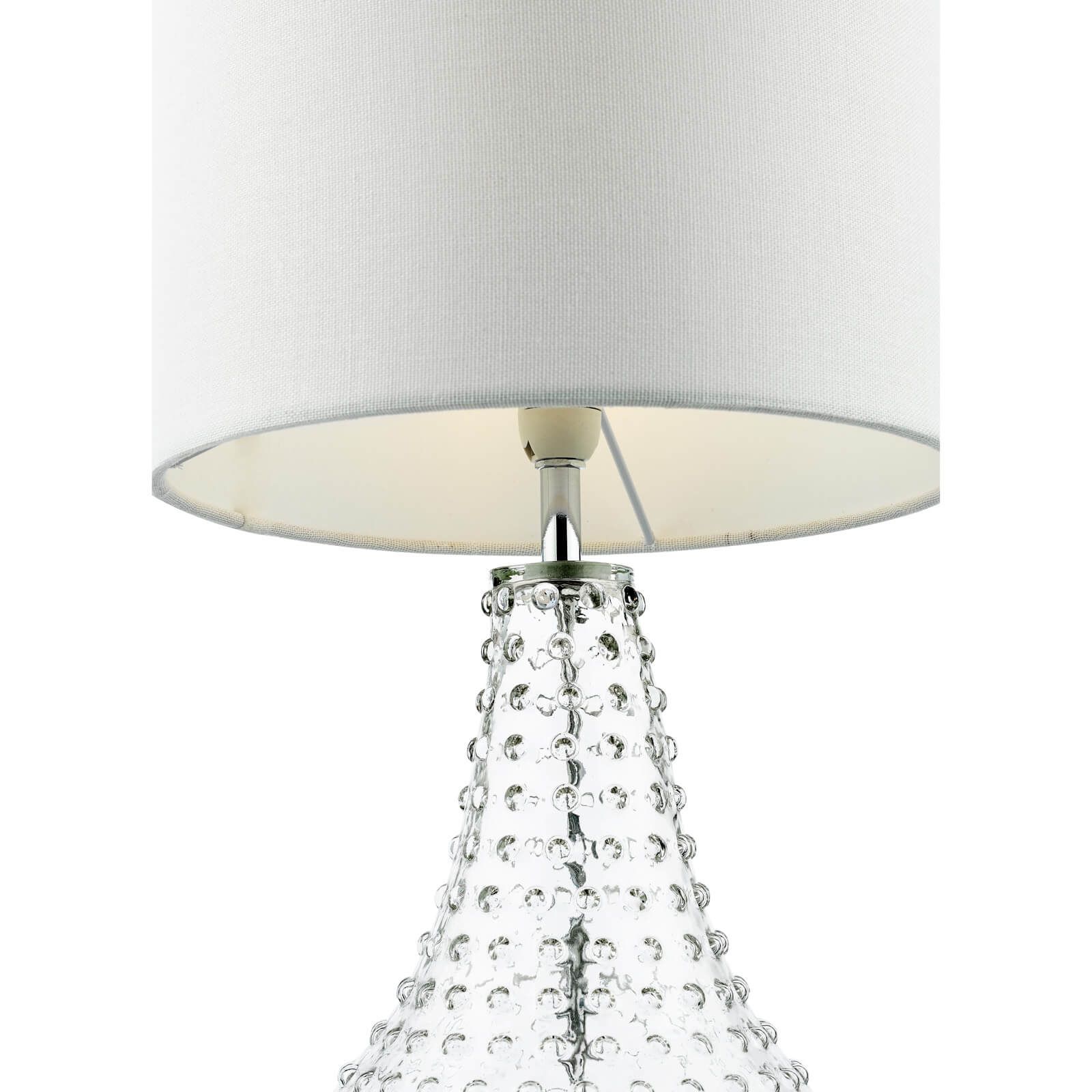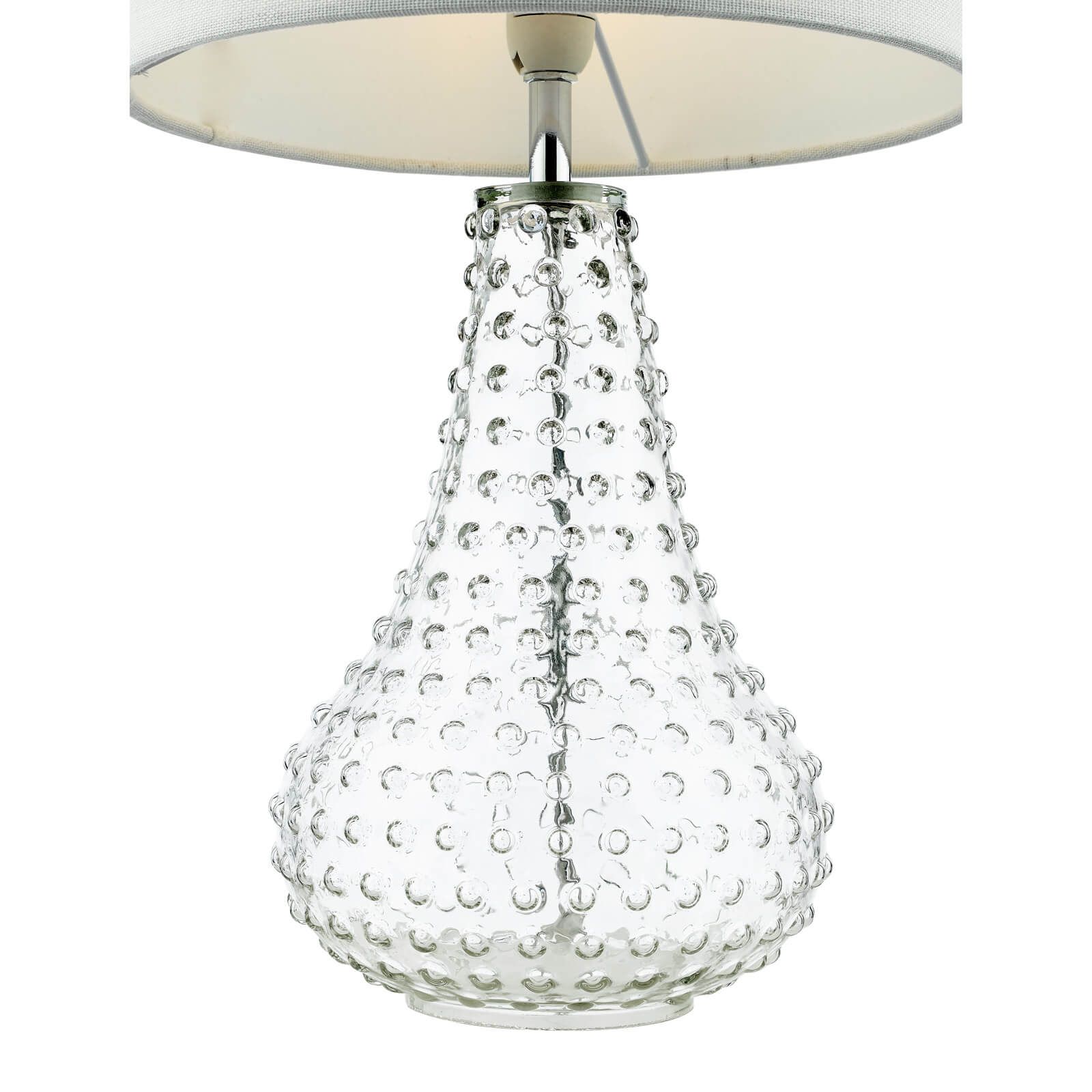 The Kristina Table Lamp is a stunning piece of lighting that perfectly balances vintage charm and contemporary design. This exquisite lamp features a clear hobnail-style glass base, adding a tactile and eye-catching element to your décor. The elegant white linen shade complements the base beautifully, offering a soft and inviting glow that creates a warm ambiance in any room. Ideal for use as a bedside lamp, the Kristina also works wonderfully on an end table, console, or in a cozy reading nook. Its sophisticated aesthetic makes it a versatile addition to your living room, bedroom, or home office.
