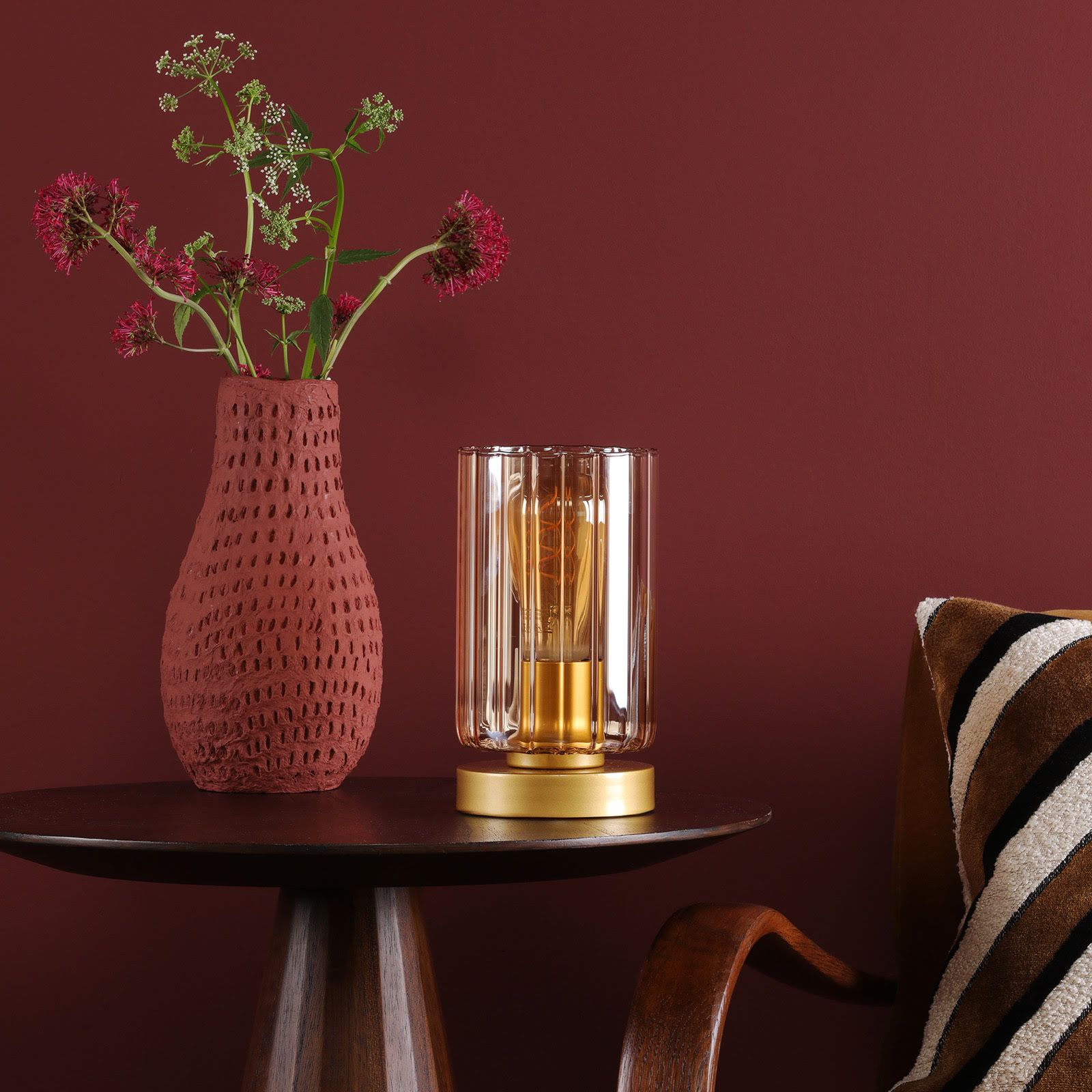The Daylin Touch Table Lamp in satin gold combines modern glamour with the simplicity of clean lines. Crafted from powder-coated steel, it features an oversized amber glass shade with a softly rippled texture and lustrous finish, bringing subtle statement style to any setting. The intuitive touch on-off control offers effortless operation at the base, making it easy to move from functional task lighting to a softer, relaxed ambience. Finished with a luxury black braided cable, Daylin is perfect for lounges, bedrooms, studies or hallways - a refined balance of statement design and everyday practicality.