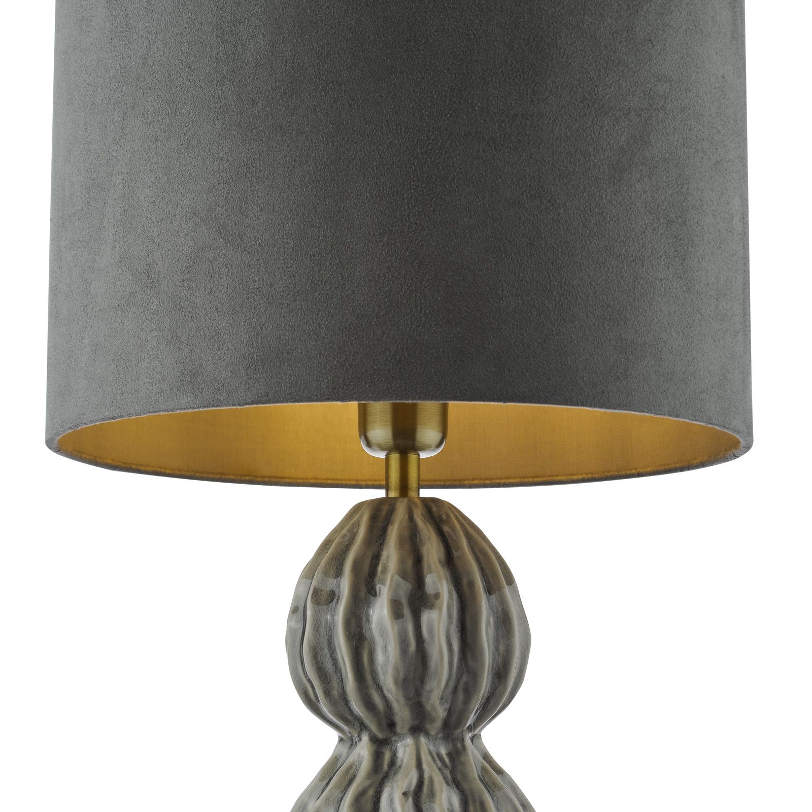 Elevate your space with the Lorelai table lamp from dar lighting, a stunning blend of form and function. This grey ceramic table lamp boasts a beautifully textured surface, enhanced by a reactive glaze that brings its intricate details to life. Topped with a sumptuous grey velvet shade and matching cotton lining, it casts a warm, inviting glow perfect for creating ambiance in any room. The Lorelai's ceramic base adds a touch of artisanal charm, while its inline rocker switch ensures effortless operation. Whether gracing a bedside table or adding character to your living room, this versatile lamp is sure to become a talking point. Embrace the perfect balance of style and practicality with the Lorelai ceramic table lamp.