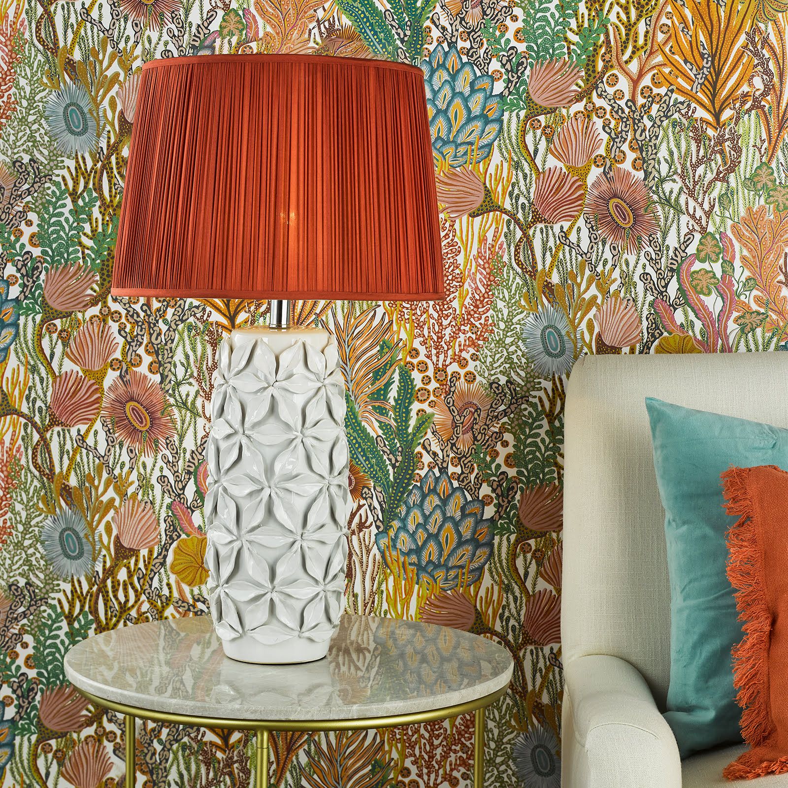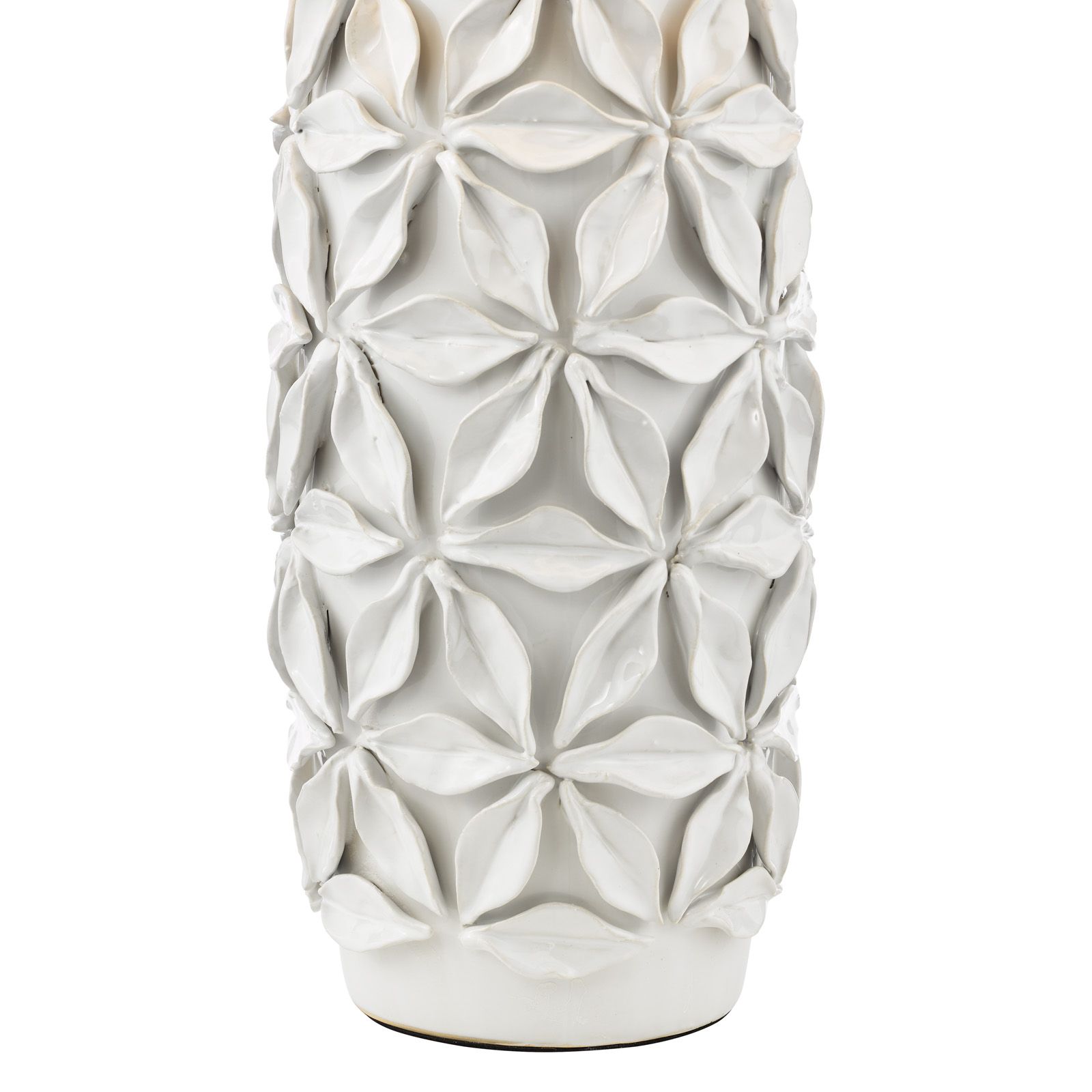 Illuminate your space with the artisanal charm of the Neus table lamp from dar lighting. This handmade ceramic table lamp base boasts a natural off-white hue, adorned with delicate hand-applied petals that add a touch of texture and intrigue. The contemporary design of this ceramic table lamp effortlessly complements a variety of interior styles, from minimalist to eclectic. Sold without a shade, the Neus invites you to unleash your creativity - simply pair it with a shade from our extensive range to create a bespoke lighting solution that's uniquely yours. Whether gracing a bedside table or adding ambiance to your living room, this versatile and handcrafted piece is sure to cast a warm glow on your home.