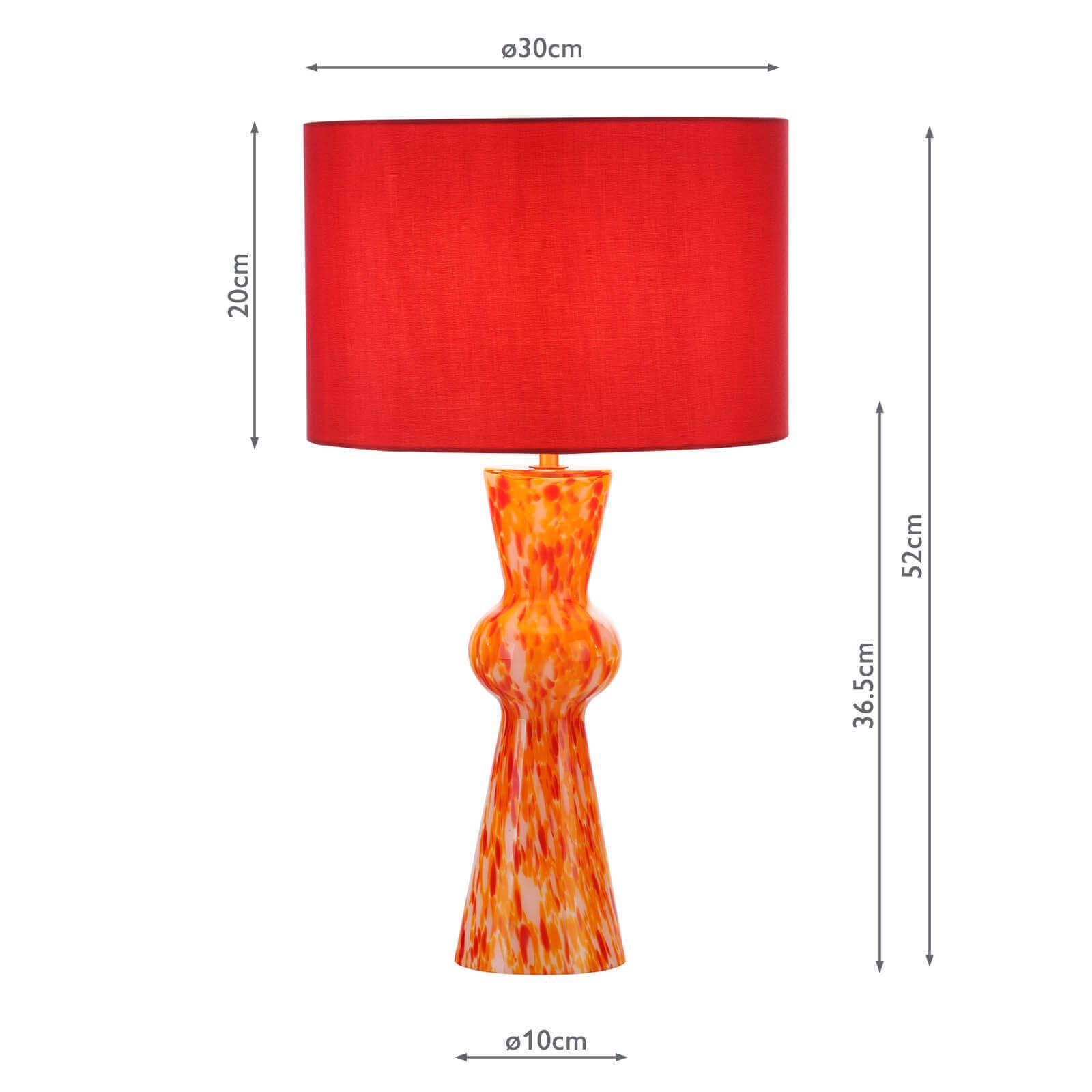 The Rheneas Table Lamp Red ConfettiGlass is a contemporary take on the mid-century bow-tie design. The hand-blown red confetti glass has glass chips of white, orange and pink, while the red cotton mix shade features a lovely pink lining. Whether on a bedside Table or in a living room, this lamp adds a touch of contemporary style to any space.