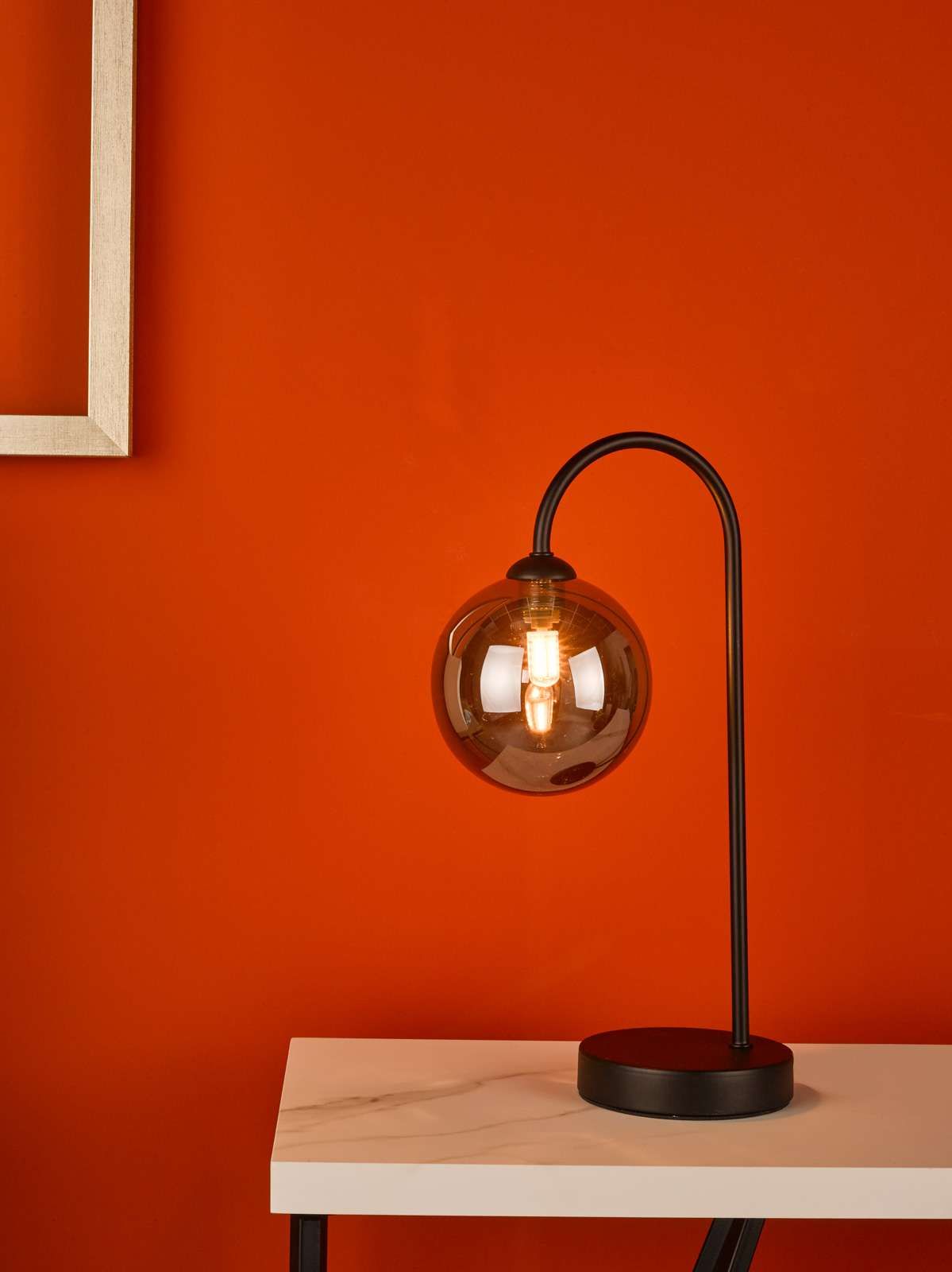 The Eisse touch table lamp in matt black with smoked glass follows the current geometric minimalist design trend with a large radius neck leading to a beautiful mirror smoked glass. The Eisse touch lamp features a special switch with makes the all the metal of the lamp act as an on/off switch. Simply tap the metal part of the lamp to turn it off or on. Making it ideal as a bedside or desk lamp.