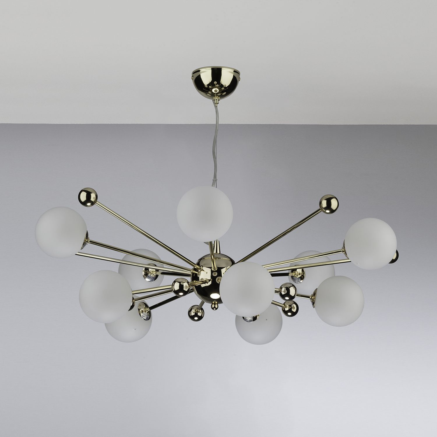 Ursa 10 Light Pendant Polished Gold Opal Glass