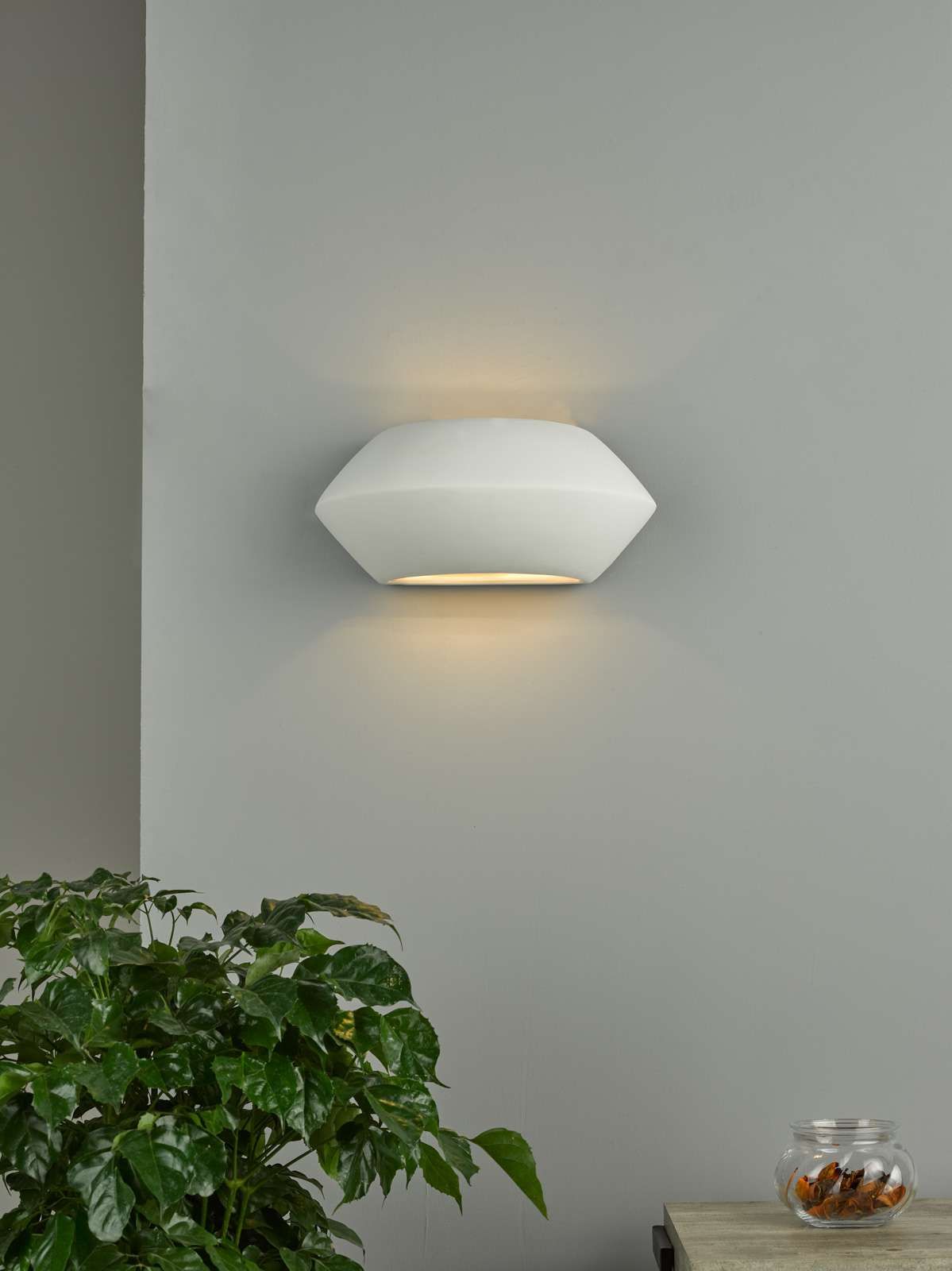 The Foden ceramic wall washeris hand cast in a modern shape, the openings top and bottom allow for light to be cast up and down. Supplied with a matt white glaze the Foden wall light is perfect for colour blockingand can be painted with any emulsion paint to match your wall scheme.