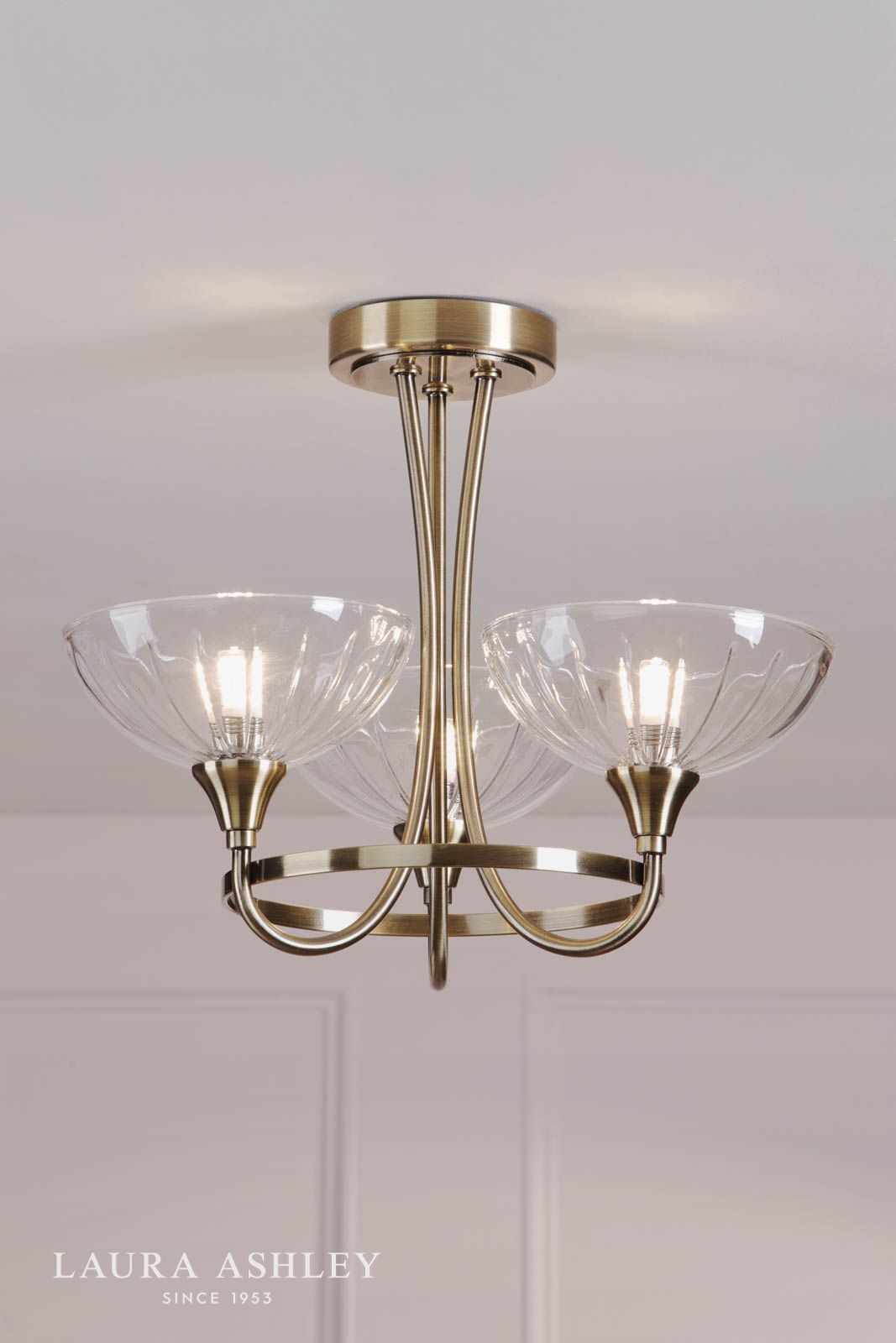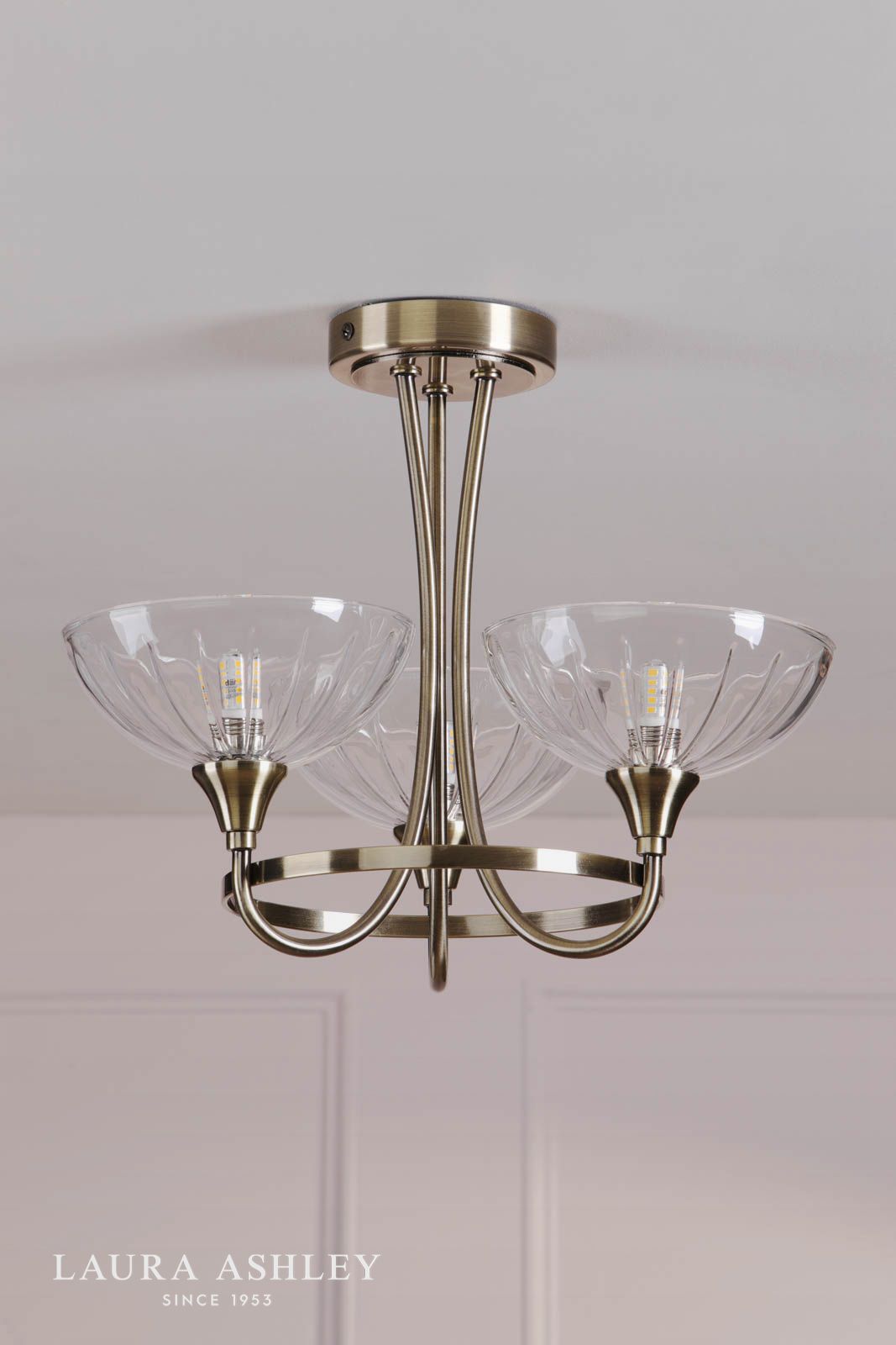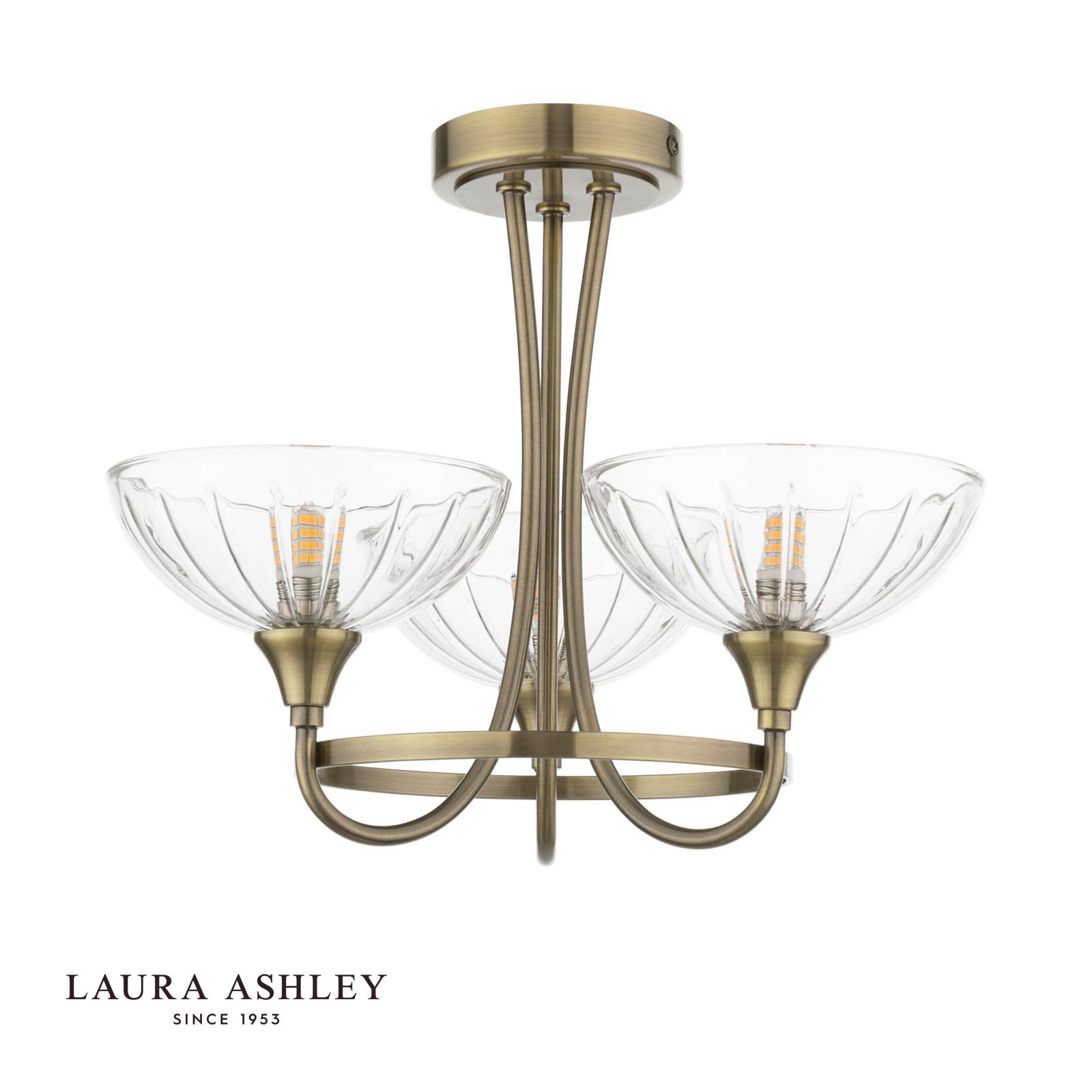 Laura Ashley Wellham 3 Light Semi-Flush Antique Brass and Ribbed Glass