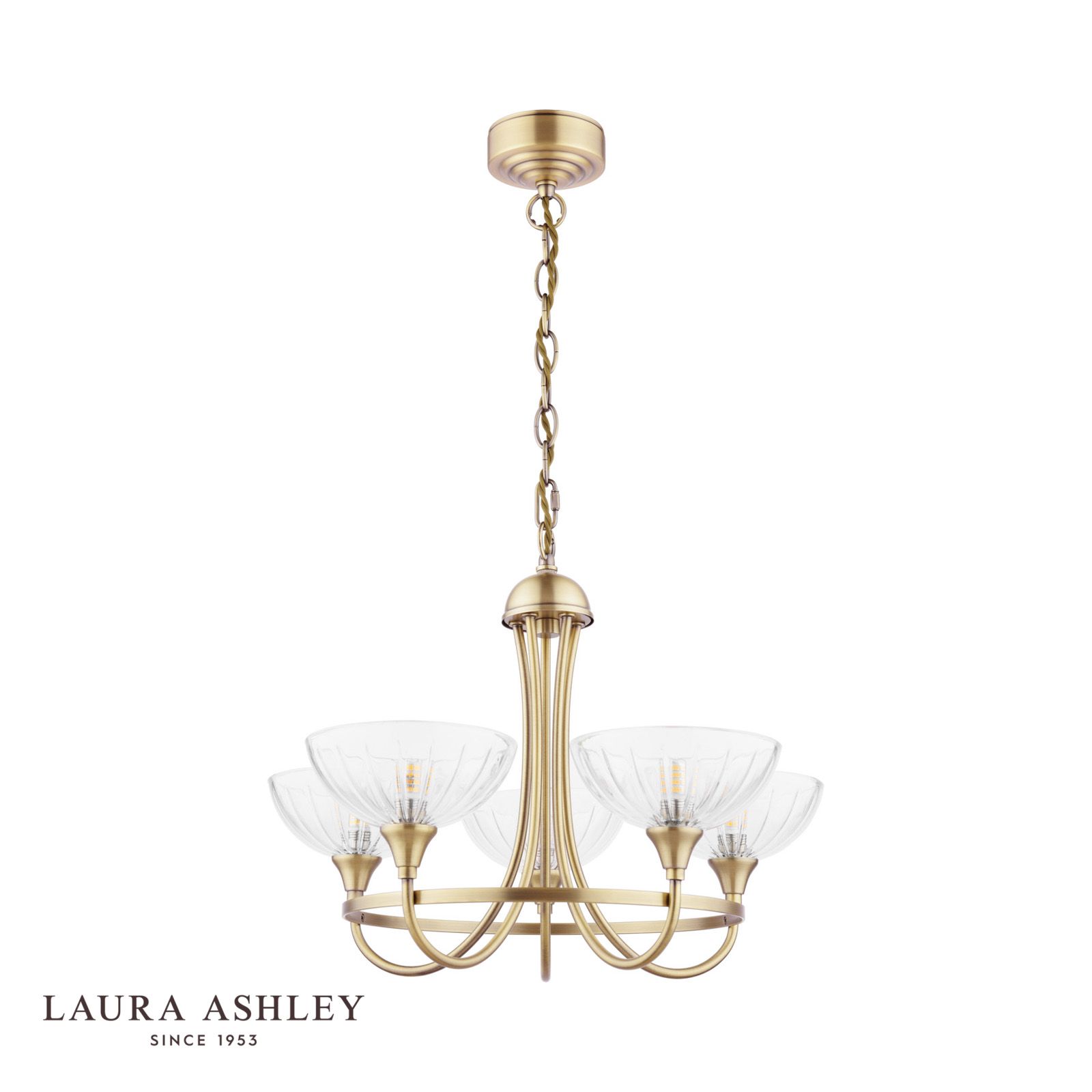 Laura Ashley Wellham 5 Light Armed Pendant Antique Brass and Ribbed Glass